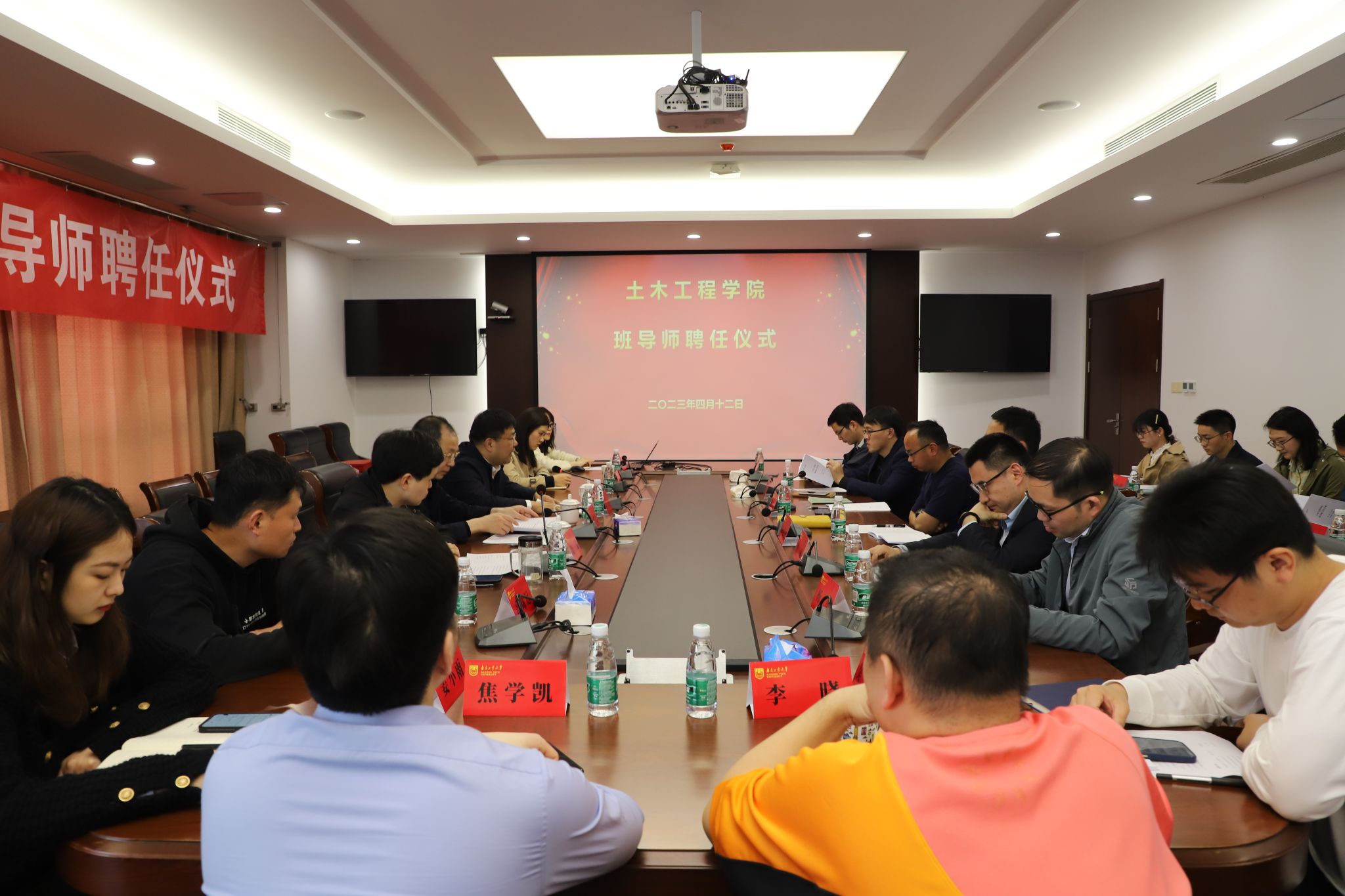 412日下午,999论坛白菜大全新任班导师聘任仪式在立德楼101会议室举行。校党委教师工作部部长、人事处处长王曙光,土木学院党委书记张涛,全体新任班导师和全体辅导员参加聘任仪式。仪式由院党委副书记路遥主持。
