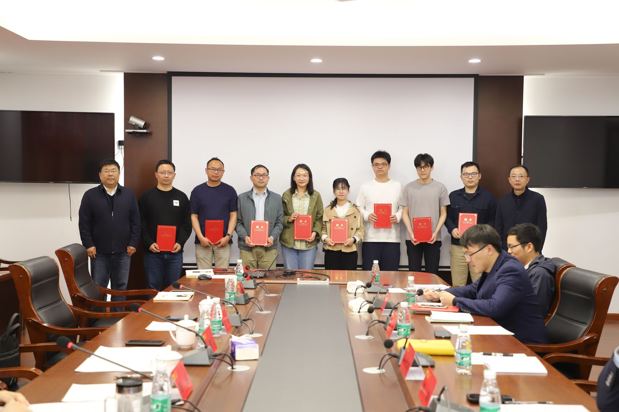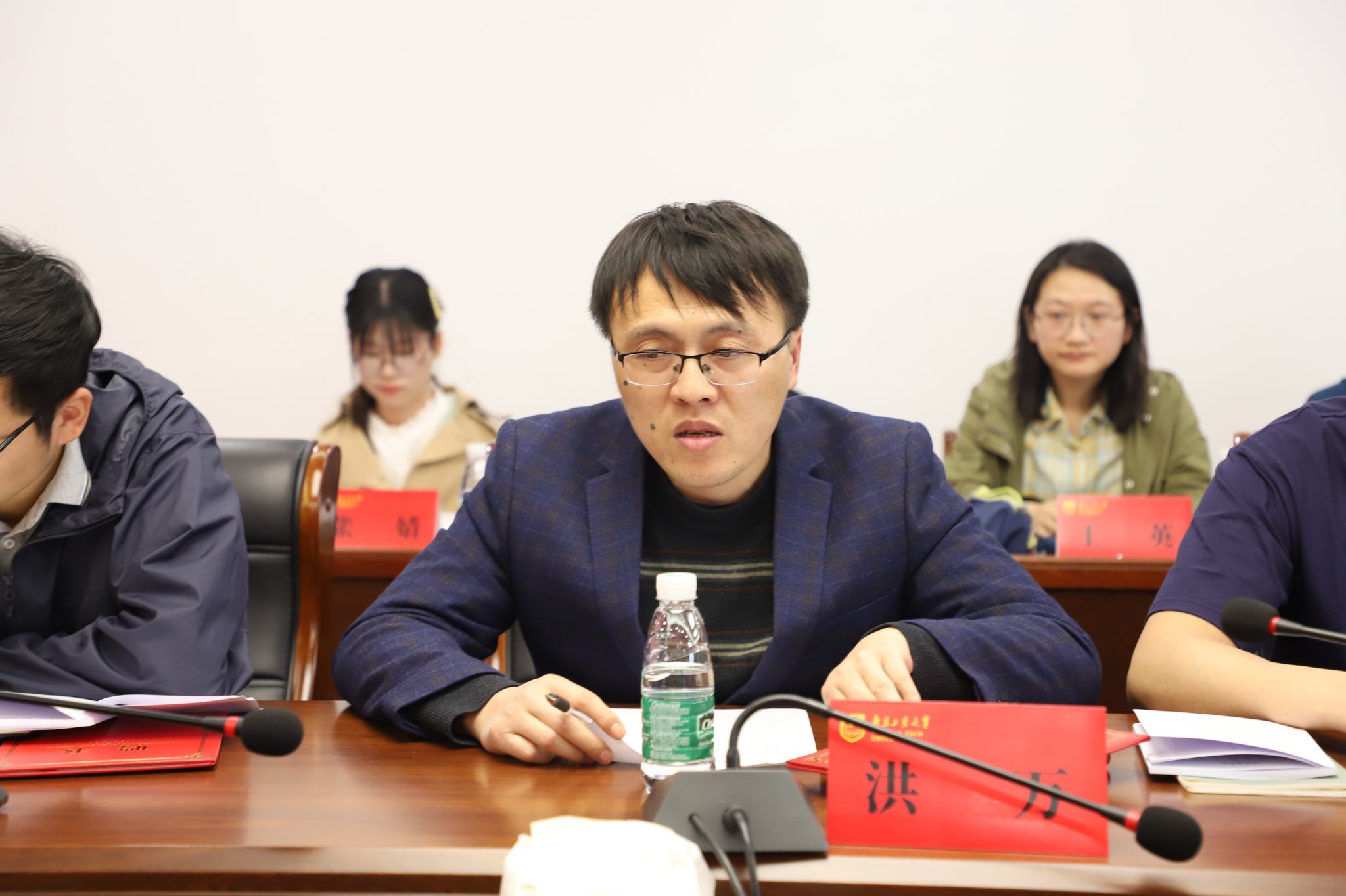 张涛书记致辞并从“四个方面下功夫”强调了班导师的工作职责和工作重心,王曙光处长宣读《关于聘任赵爱国等16名教师担任本科生班导师的决定》,王曙光处长、张涛书记共同为16位新任班导师颁发聘书。随后,班导师代表洪万、刘聪和吴彪结合带班情况依次交流工作心得,表示要与辅导员队伍协同合作、同频共振,共同为学生思政引领和成长成才服务。