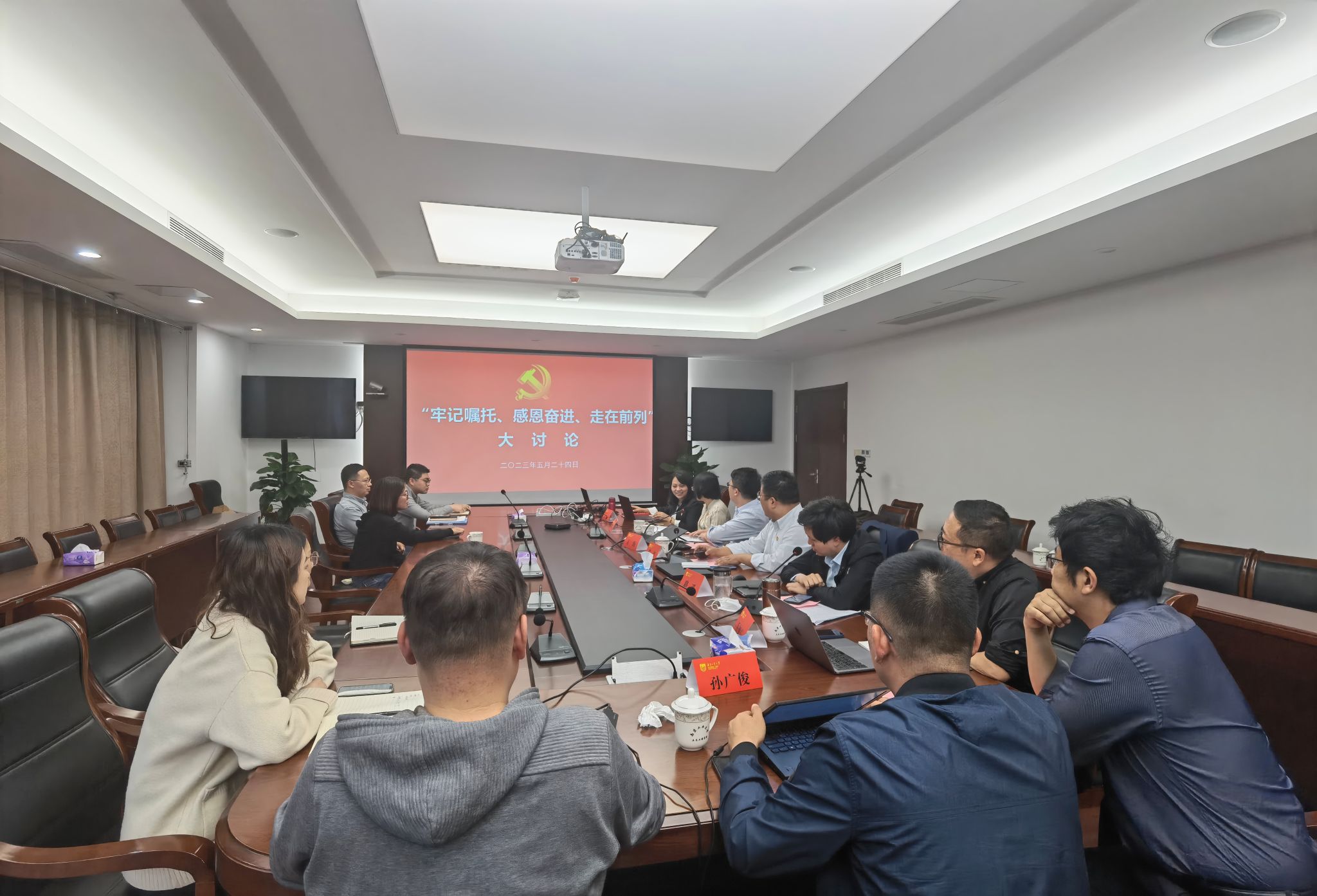 党课授课结束后,班子成员结合学习体会及具体工作,展开“牢记嘱托,感恩奋进,走在前列”大讨论。