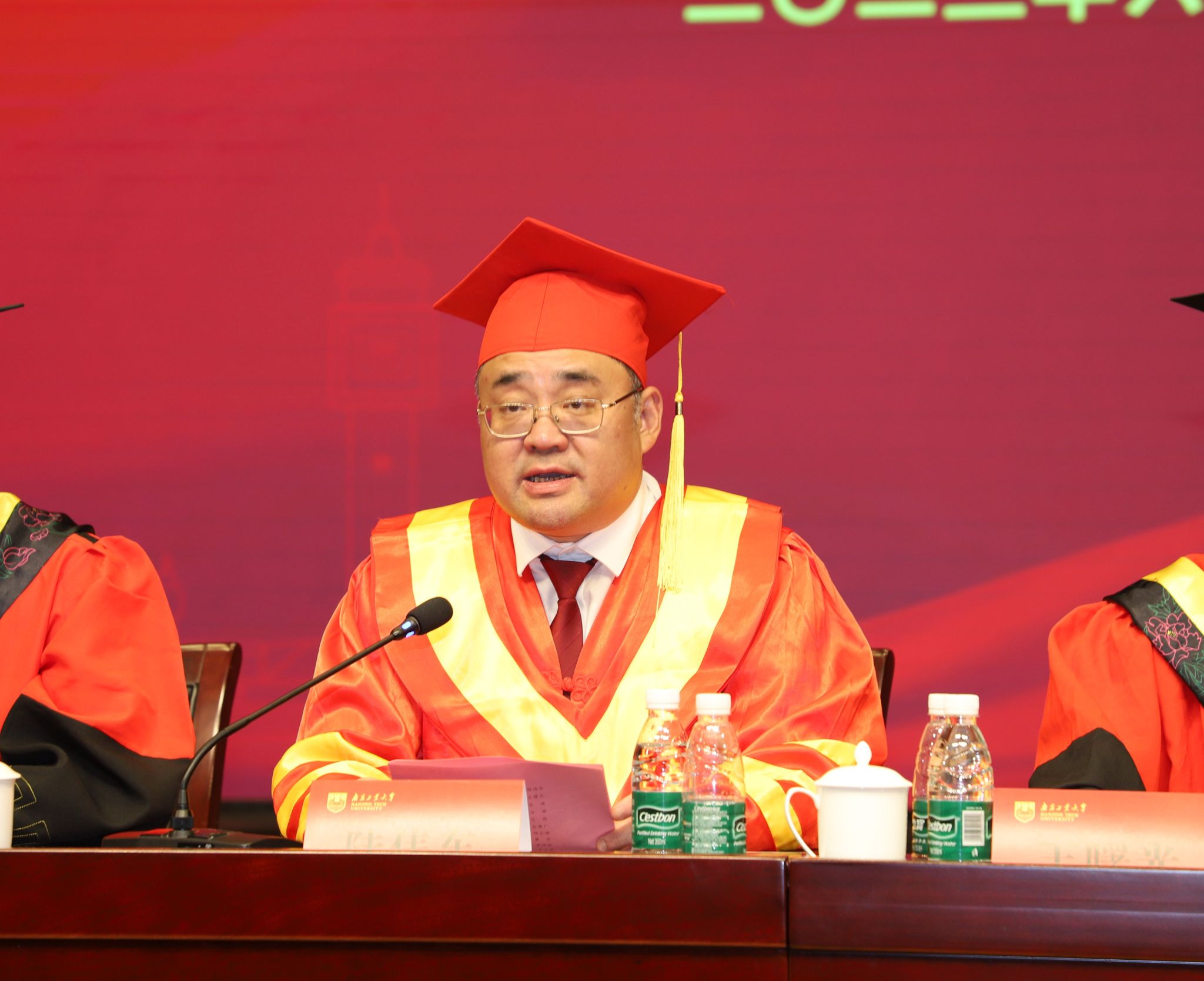 在热烈的掌声中,校党委常委、副校长陆伟东讲话。他对同学们圆满完成学业表示祝贺,并对毕业生们提出三点希望:一要坚定信念,筑牢理想信念“压舱石”,做矢志报国的奋进者;二要锐意进取,勇做科技创新“主力军”,做踔厉奋发的先锋者;三要迎难而上,练就干事创业“真本领”,做脚踏实地的践行者。谆谆嘱托和亲切叮咛引起毕业生的强烈共鸣,现场响起热烈的掌声。