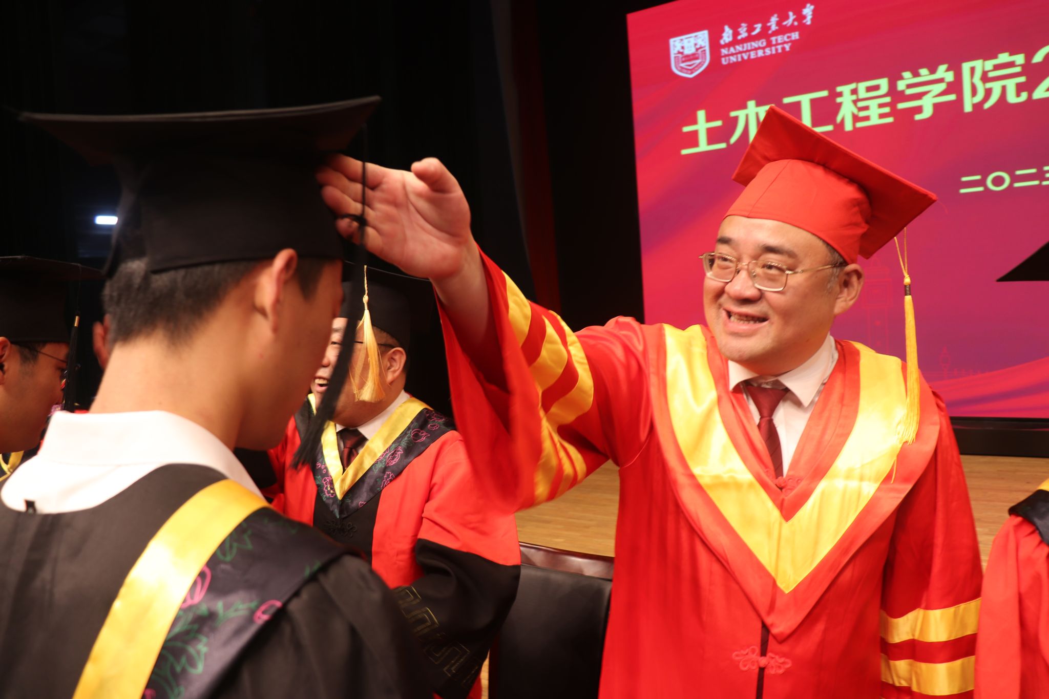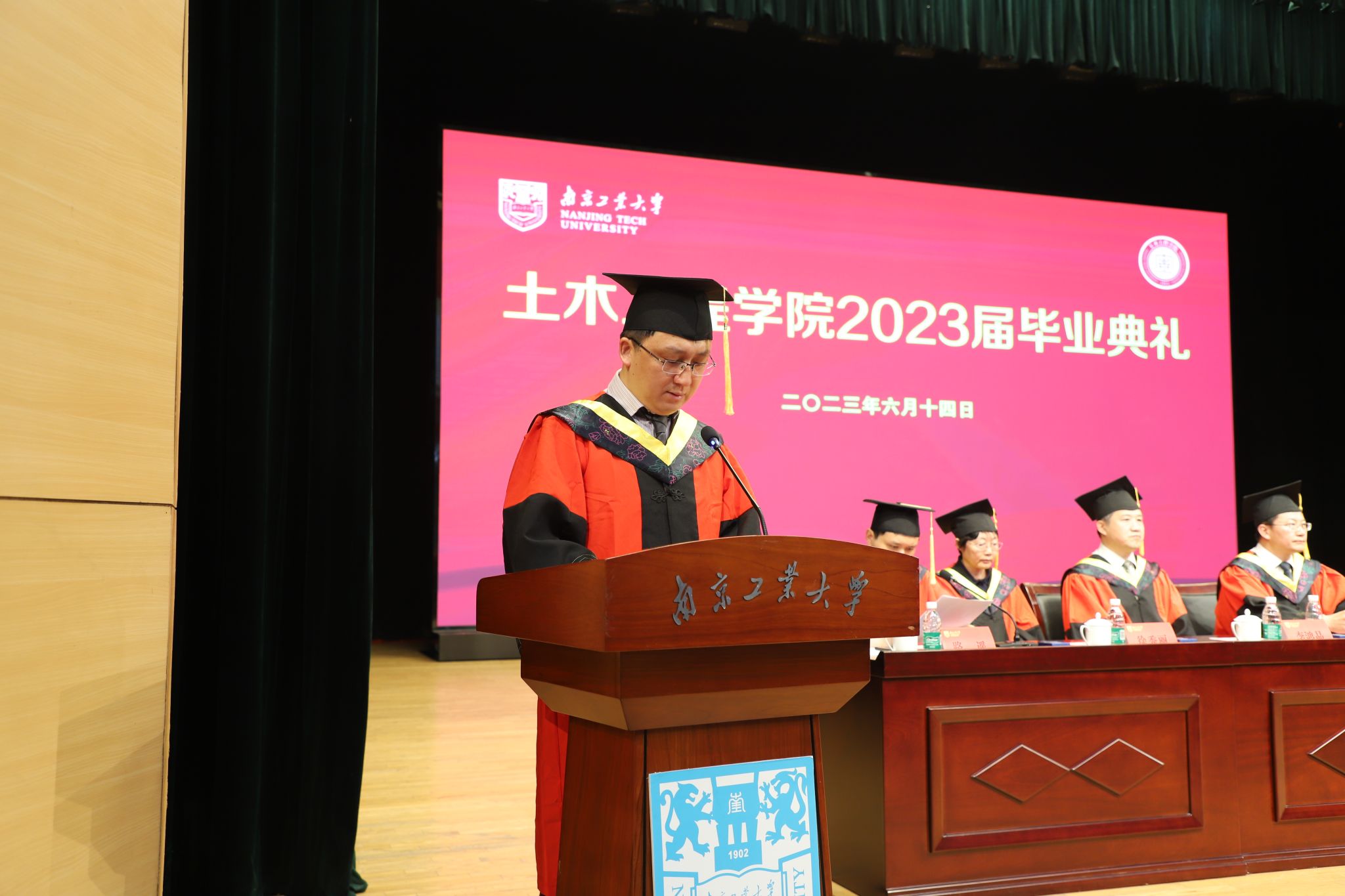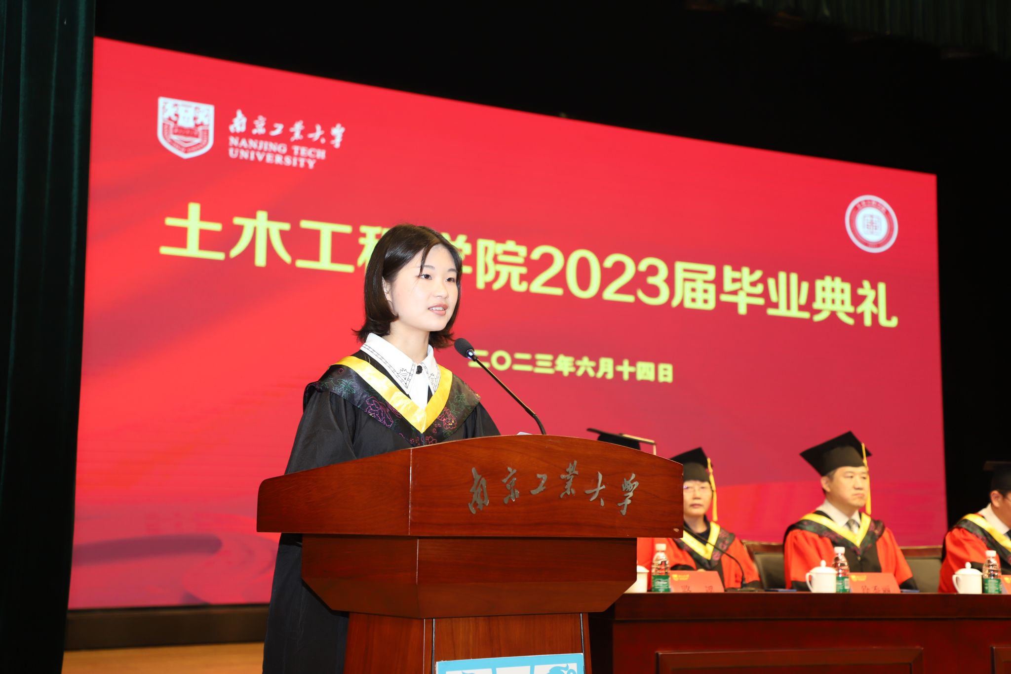毕业典礼伊始,全场奏唱国歌。院党委书记张涛宣读校优秀毕业生名单;院长方海宣读“中铁建工”就业工作专项奖学金表彰决定;本科毕业生代表土木1903班王开睿同学、毕业研究生代表土研2002蒋慰同学分别发言,分享了自己在校期间的学习生活感悟,感谢学校、学院和师长的谆谆教诲。家长代表、土木1903班谭梦辰同学父亲谭昌龙发言,表达了对母校辛勤培养学生的感谢。教师代表任鑫教授在发言中表示,希望同学们牢记校训,通过终身学习提高人才竞争力。随后,学院向2023届毕业生代表赠送纪念戒指,2023届毕业生代表向学院捐赠蔷薇花海,毕业生代表朗诵《到祖国最需要的地方去》。在欢快的音乐声中,在主席台就坐的师长们为毕业生代表授予学位并拨穗。