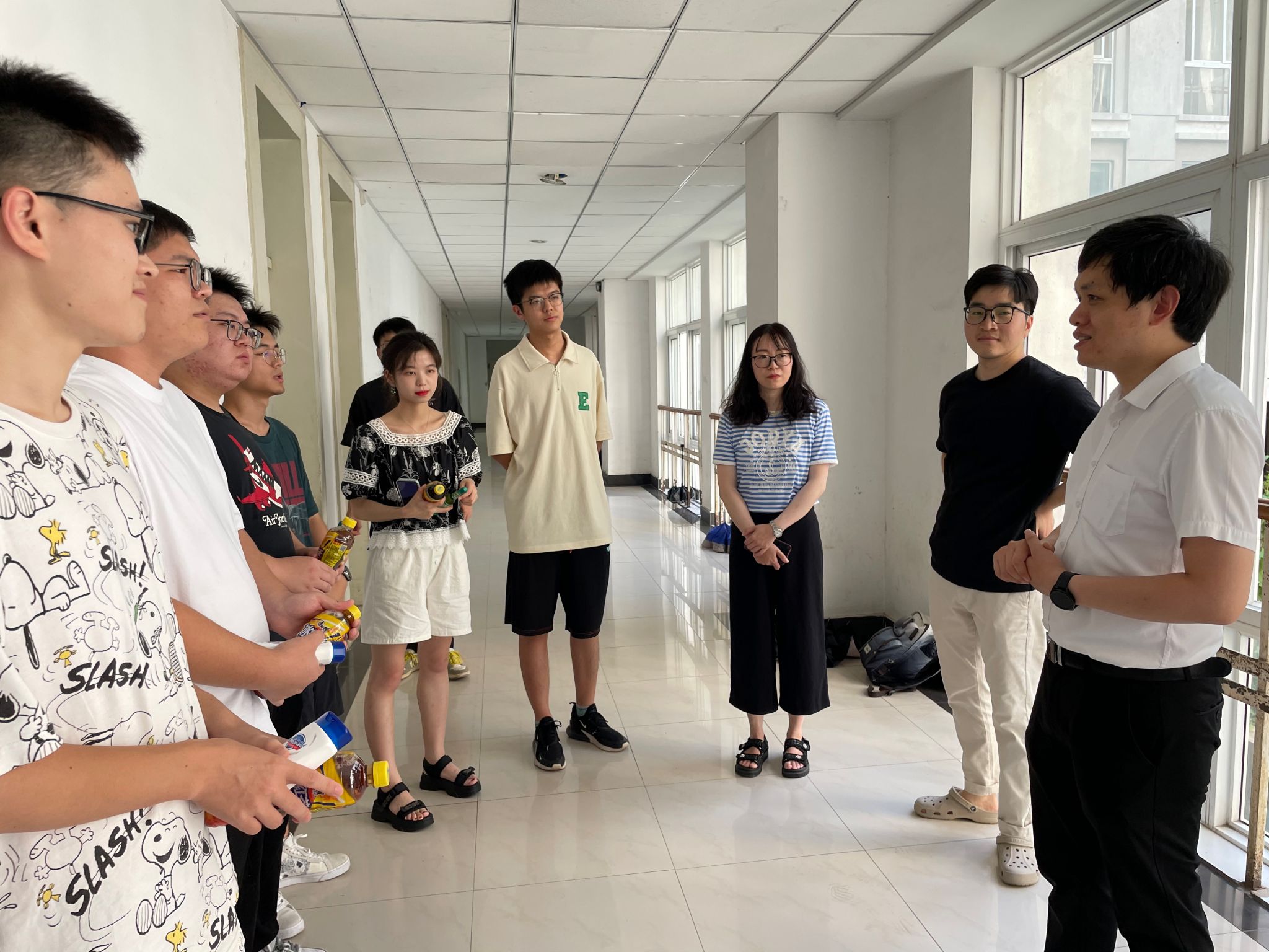 在地坤楼研究生工作室,老师们实地查看了工作室的环境卫生情况并询问了留校研究生的科研工作进展。路遥副书记对研究生主动放弃假期,留校安心科研表示肯定,希望研究生合理安排暑期时间,早日产出更加丰硕的科研成果。同学们对学院的关心和慰问表示感谢,并表示要充分利用暑期留校时间进行学习、开展研究。
