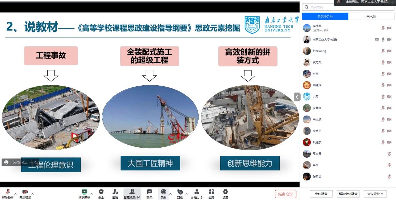 胡皓副教授的说课以“桥墩的设计和构造”为题,在传统桥墩的基础上补充了装配式桥墩的内容以适应桥梁工业化建造的发展需求。通过教学内容的梳理和对学生学情的分析提出了一套对分课堂和案例教学法相结合的教学方法,深受大赛专家评委和大众评委的好评。