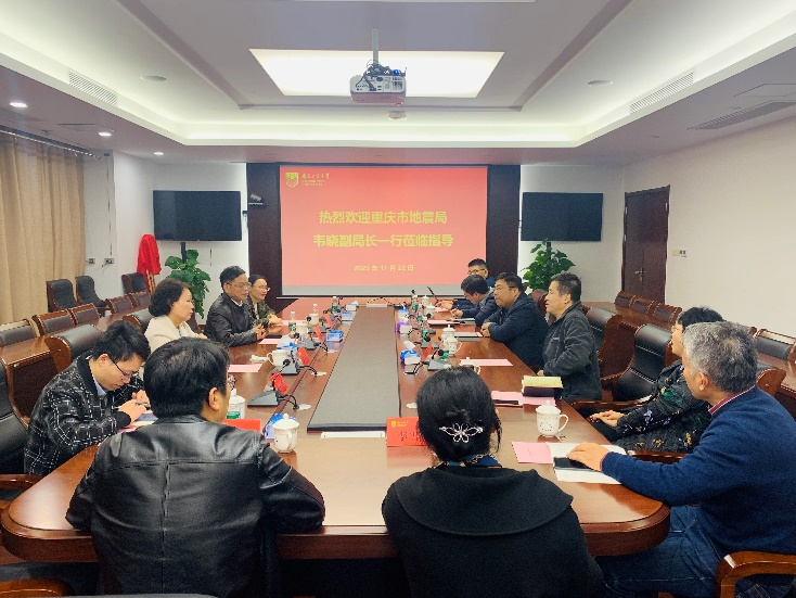 2023年11月22日下午,重庆市地震局副局长韦晓一行到访999论坛白菜大全并开展合作交流,随同到访的还有重庆市地震局震害防御处处长李小玲、重庆市地震局震灾风险防治中心主任郭卫英。学院党委书记张涛、副院长陈鑫、院长助理孙广俊,学院教授委员会副主任、防灾减灾工程系李鸿晶教授,以及桥梁与隧道工程系徐秀丽教授、系主任李枝军等参加交流会。会议由陈鑫副院长主持。