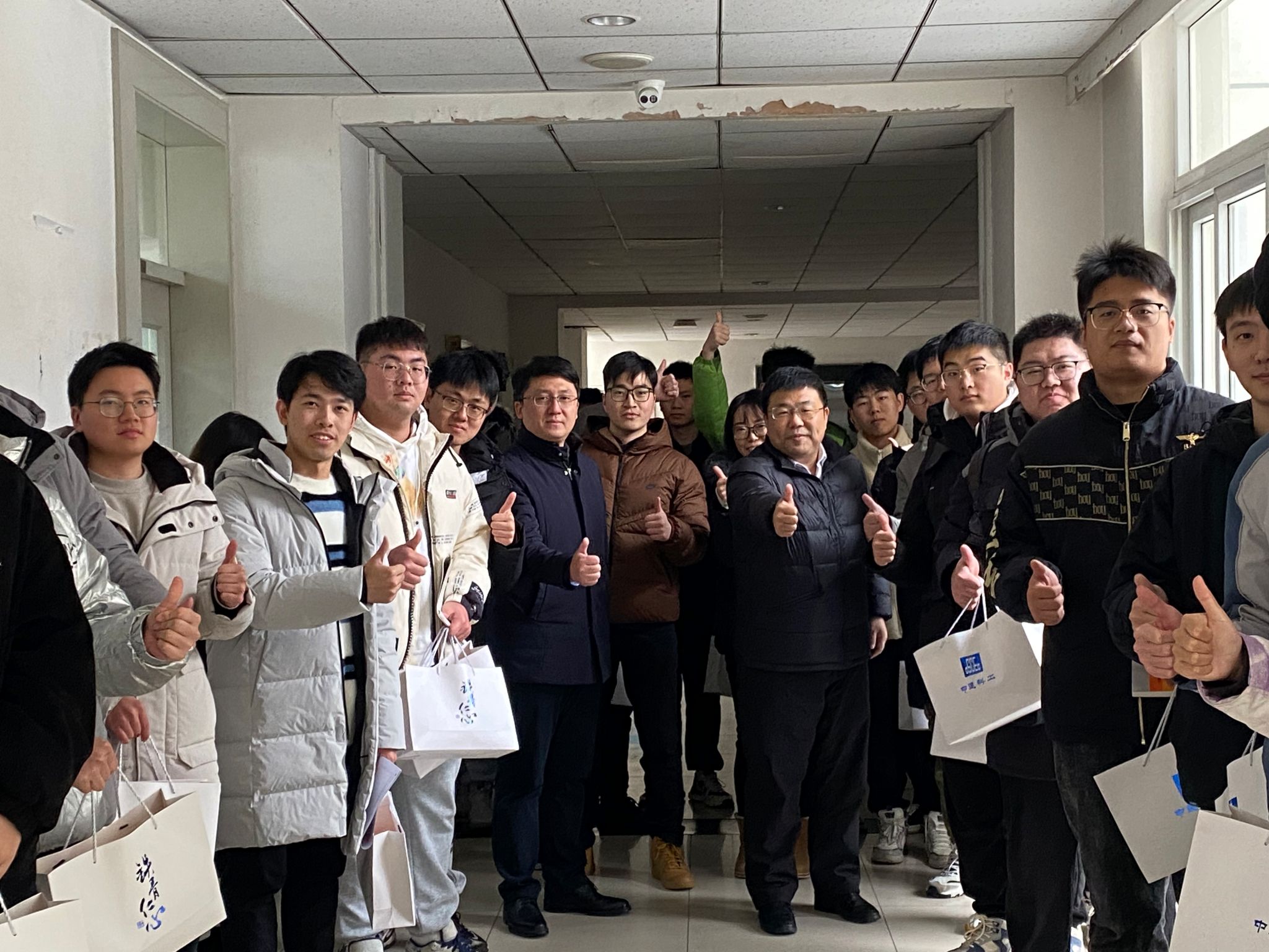 为舒缓考研压力,坚定冲刺信心,12月19日下午,999论坛白菜大全联合中建科工集团开展2024届考研学子慰问活动。院党委书记张涛、院长方海及2024届毕业班辅导员黄乐、焦学凯为考研学子送去暖心礼包。
