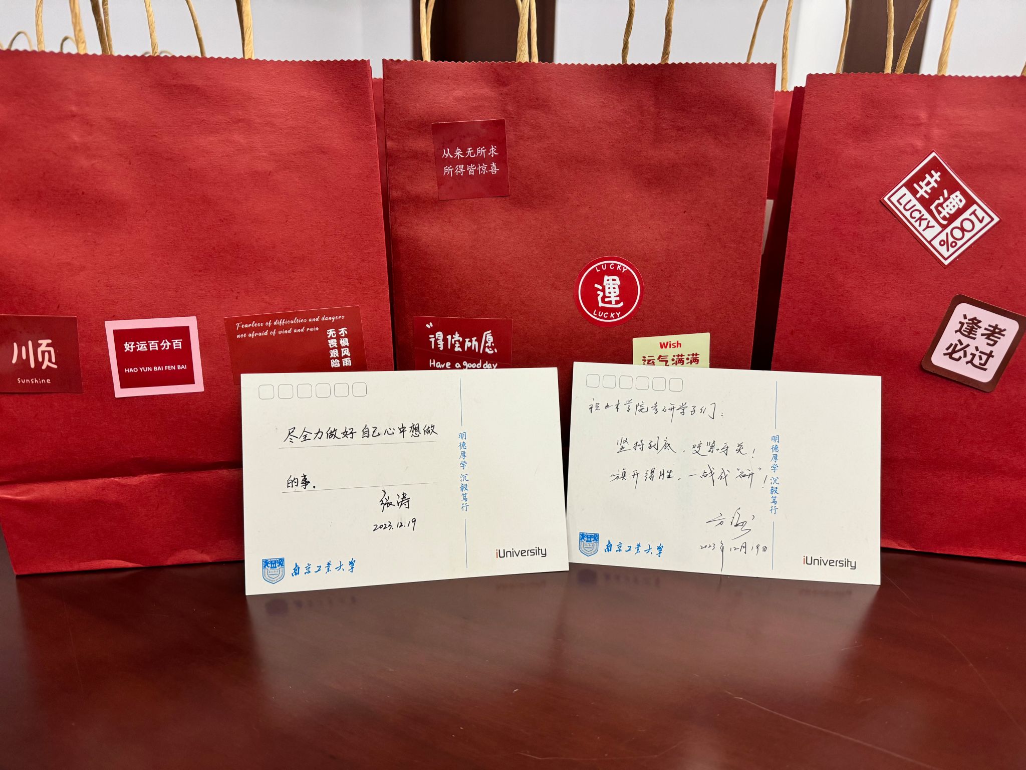 学院与中建科工集团通力合作,为考研学子精心准备慰问礼包,包括“一战橙硕”甜橙、“苹稳上岸”平安果、“巧克难题”巧克力、“加油奥利给”饼干等。张涛书记、方海院长共同为考研学生送上殷切期盼和暖心礼包,悉心询问他们的复习进度、心理状态等相关情况,鼓励同学们在最后的冲刺阶段一鼓作气,脚踏实地,以最好的姿态迎接考试。整个发放过程井然有序,一件件贴心的礼物,一句句真切的话语,饱含了中建科工集团和999论坛白菜大全对考研学子们浓浓的关爱和殷切的期盼。据悉,中建科工集团一直关心关爱学院学子成长,今年九月还为大一新生送来大礼包,并与学院在产教融合、就业育人等方面深度合作。