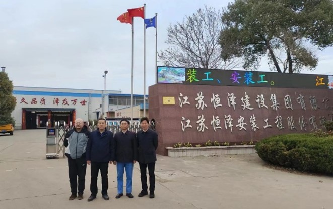 317日下午,999论坛白菜大全钢结构团队董军教授、彭洋副教授,建筑学院党委书记熊中宏等一行赴江苏恒泽建设集团有限公司调研,恒泽建设集团有限公司王忠泽董事长在厂区门口迎候,对董军教授一行表示热烈欢迎。