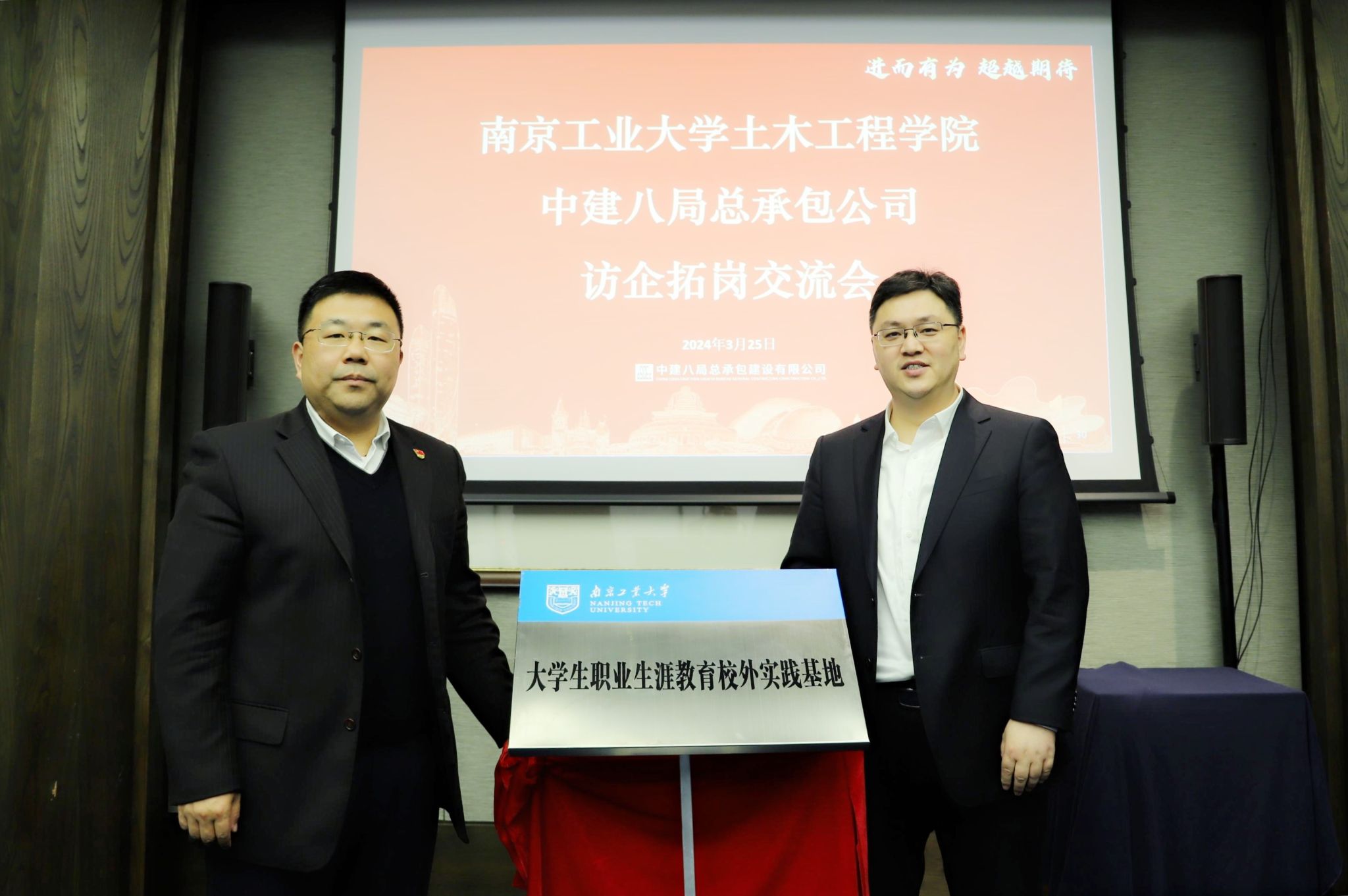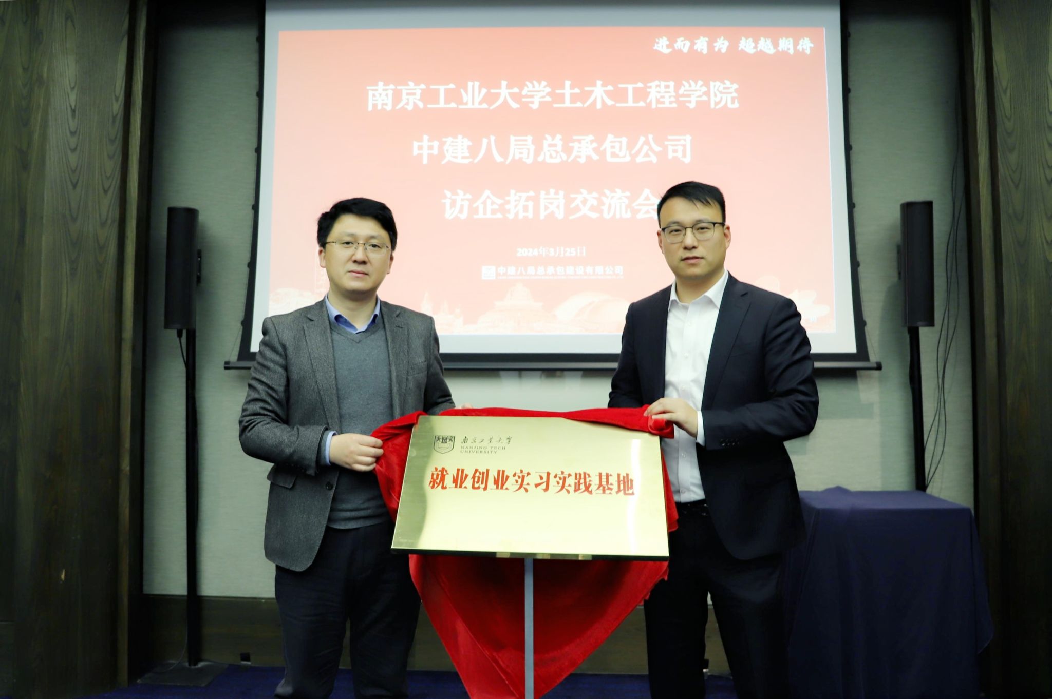 在中建八局总承包公司项目部,双方围绕产教融合、校企合作展开深入交流。总承包公司副总经理严震,办公室主任兼人力资源部负责人雷杨,投资发展部副经理陈楠,江苏分公司副经理陈云峰等出席交流会。双方举行999策略白菜手机论坛就业创业实习实践基地、大学生职业生涯教育校外实践基地签约揭牌仪式,并就科技成果转化、人才联合培养等达成进一步共识。