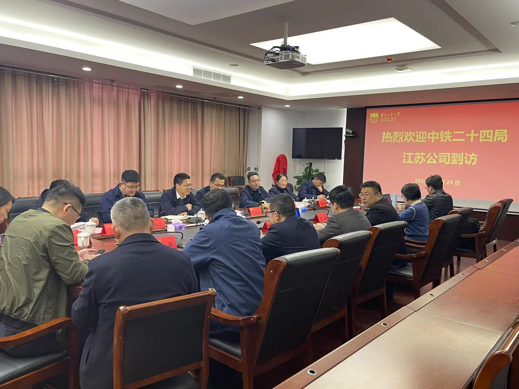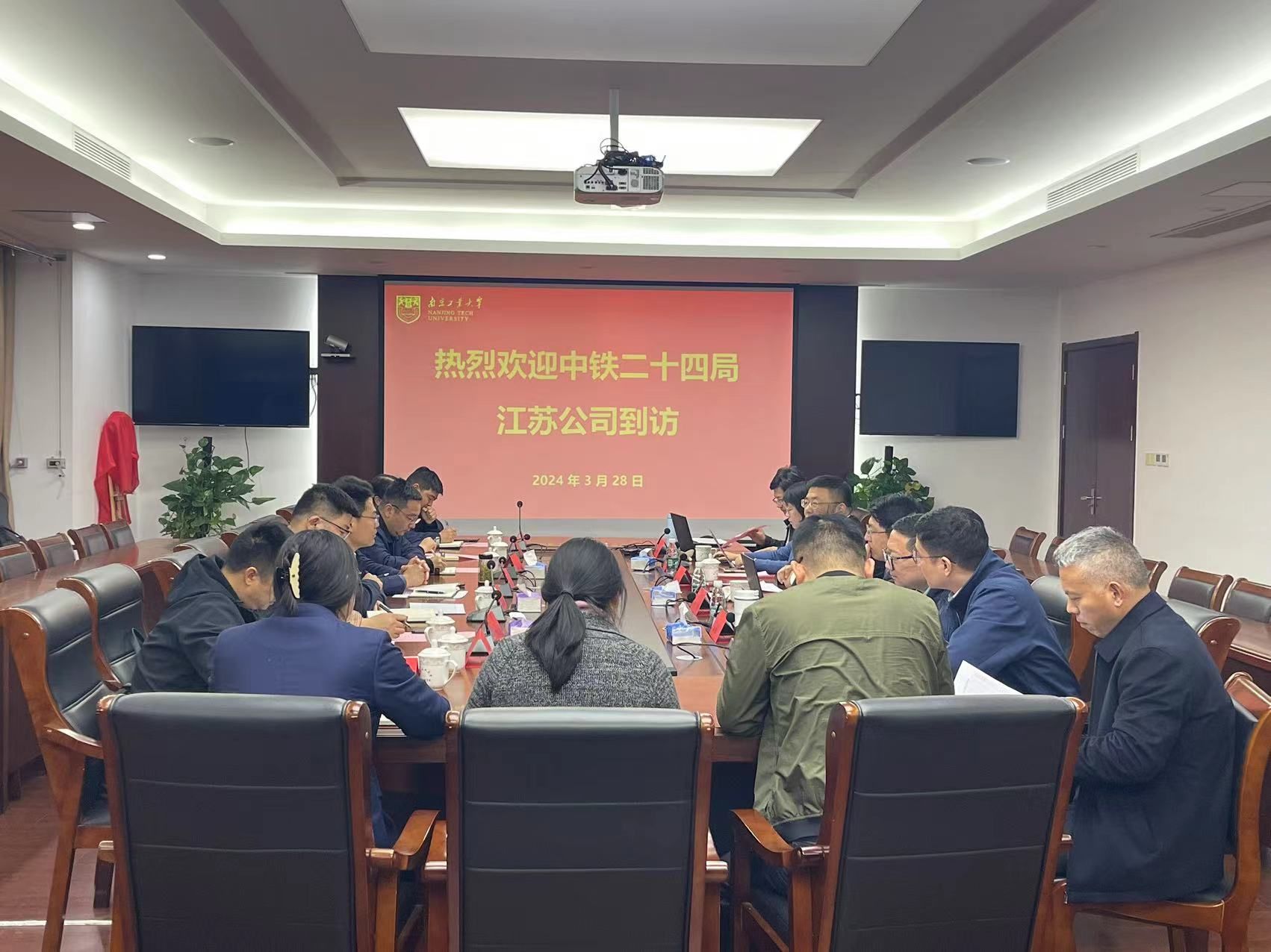2024年3月28日,中铁二十四局江苏公司党委书记季益磊一行来我院调研交流,我院领导班子成员,中铁二十四局江苏公司党委书记、执行董事季益磊;工会主席陈国强;副总经理、总工程师谢以顺;副总工程师兼技术中心(信息化管理中心)主任刘伯洋;党委干部部(人力资源部)部长谢燕萍;安全监督部部长(05届校友)吴陈东;安全监督部副部长(10届校友)李华健;培训中心副主任孔琳琳等出席会议,会议由我院党委书记张涛主持。