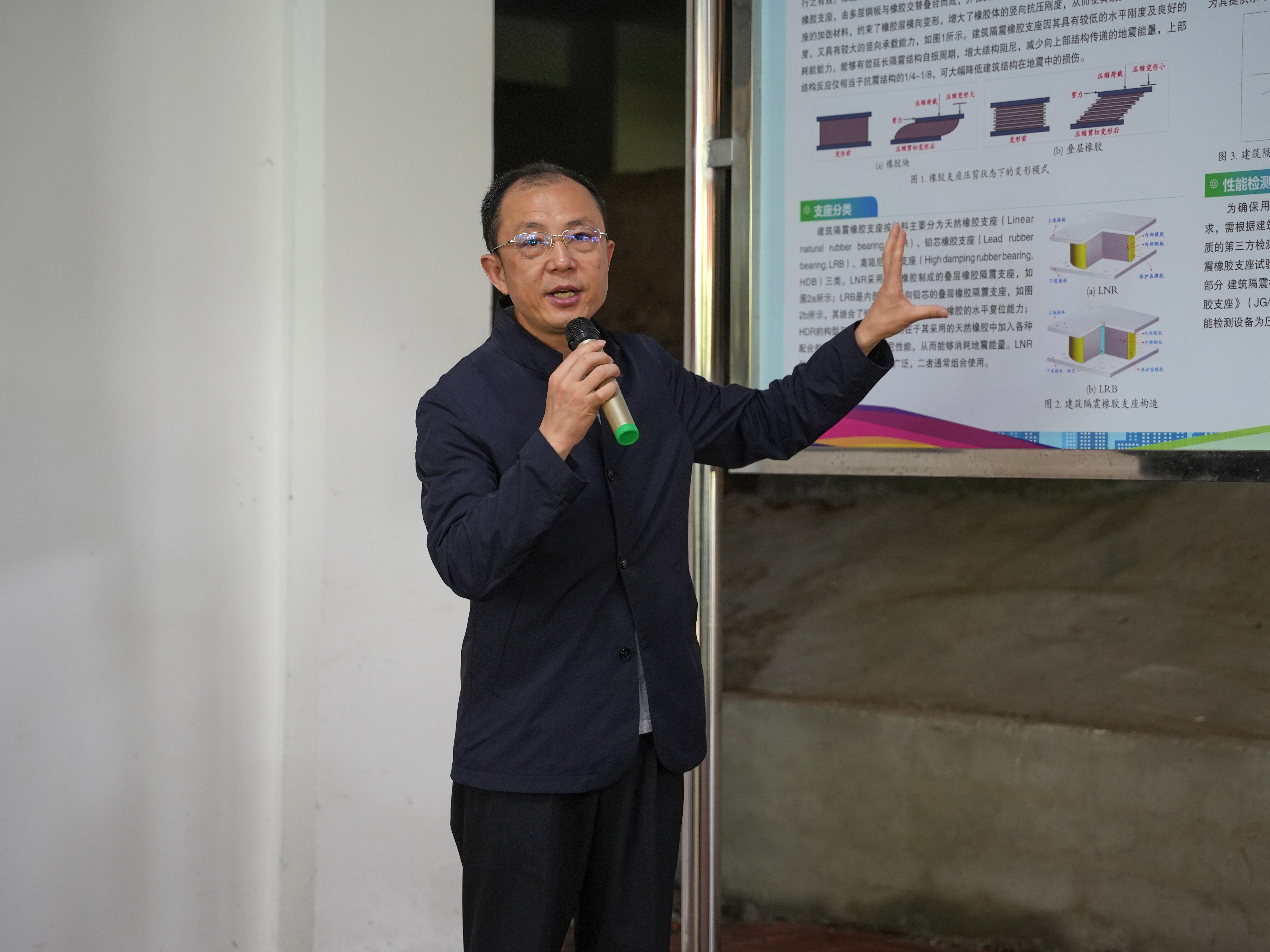 揭牌仪式由999论坛白菜大全党委书记张涛主持。陆伟东副校长致欢迎辞,并与路宏伟总工程师共同为“防震减灾科普基地”揭牌。王曙光教授详细讲解了立德楼的隔震设计。无锡圣丰建筑新材料有限公司董事长王惠强向白菜官网捐赠隔震支座,表示希望双方加深校企合作。校社会科学处处长陈红喜致辞并介绍了白菜官网科普工作进展情况。省地震局震害防御处副处长方毅表示,希望白菜官网进一步为全省地震安全做出新的贡献。999论坛白菜大全方海院长与999策略白菜手机论坛实验小学副校长王志辉共同为“童创少科院校外实践基地”揭牌。金雷部长对白菜官网成立“防震减灾科普基地”表示热烈祝贺,并表示白菜官网在推进全省科普工作发展中发挥了重大作用。