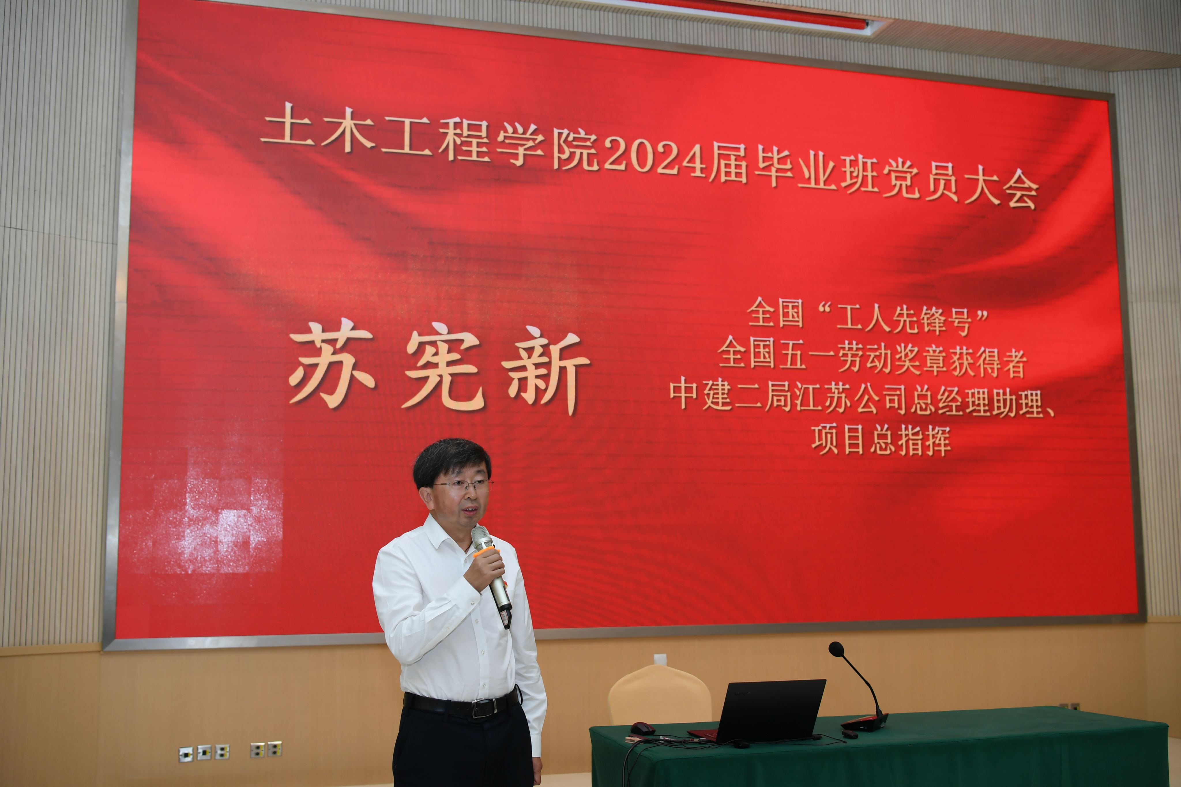 为深入学习习近平在中共中央政治局第五次集体学习上关于建设教育强国的重要指示精神,正值习近平致信祝贺中国工程院建院30周年之际,2024年6月12日上午,南工大999论坛白菜大全毕业班党员最后一课在雨花台烈士陵园管理局弘扬厅顺利举行,全国“工人先锋号”、全国五一劳动奖章获得者、中建二局江苏公司总经理助理、项目总指挥苏宪新给全体毕业班党员上党课。
