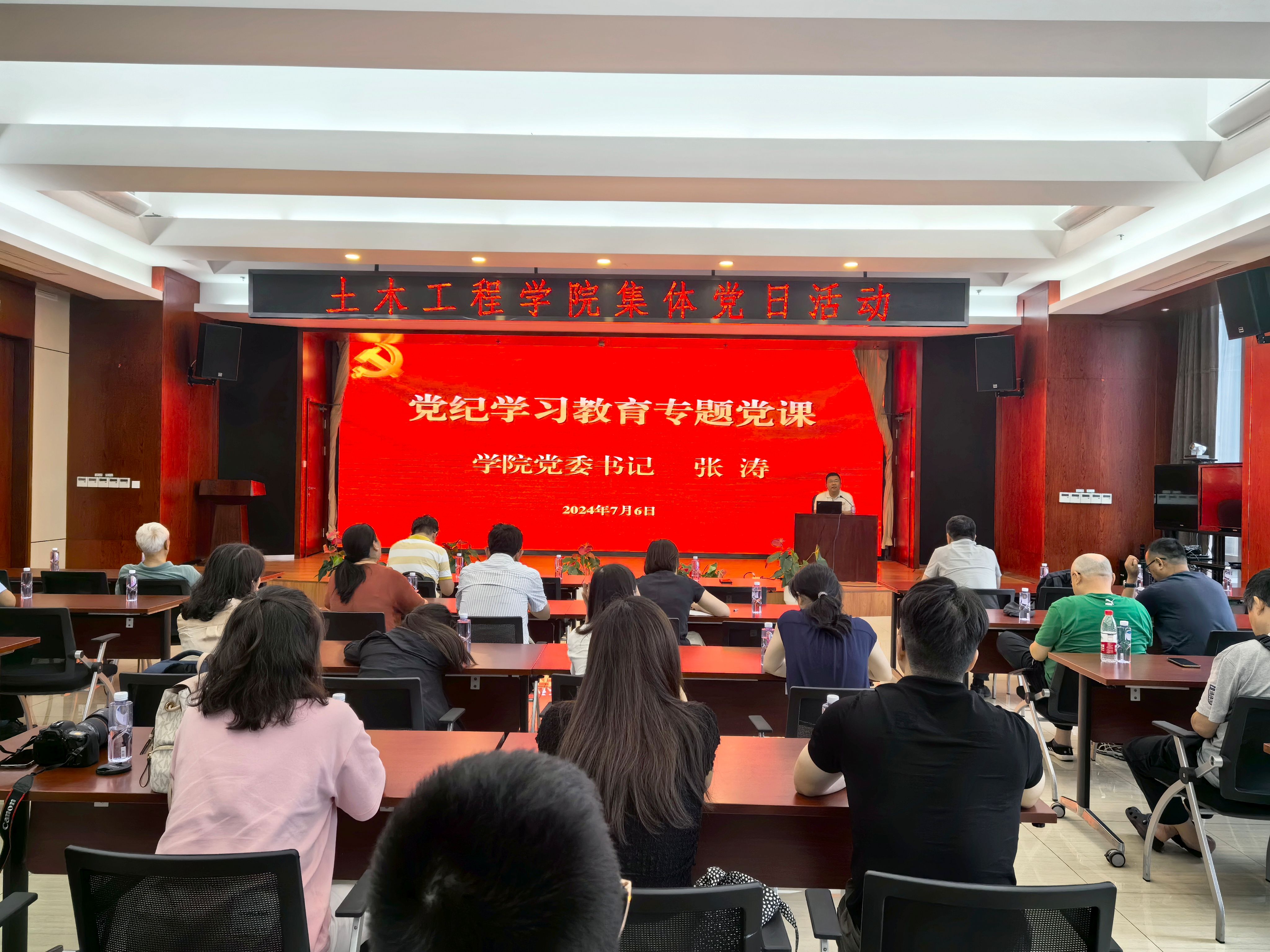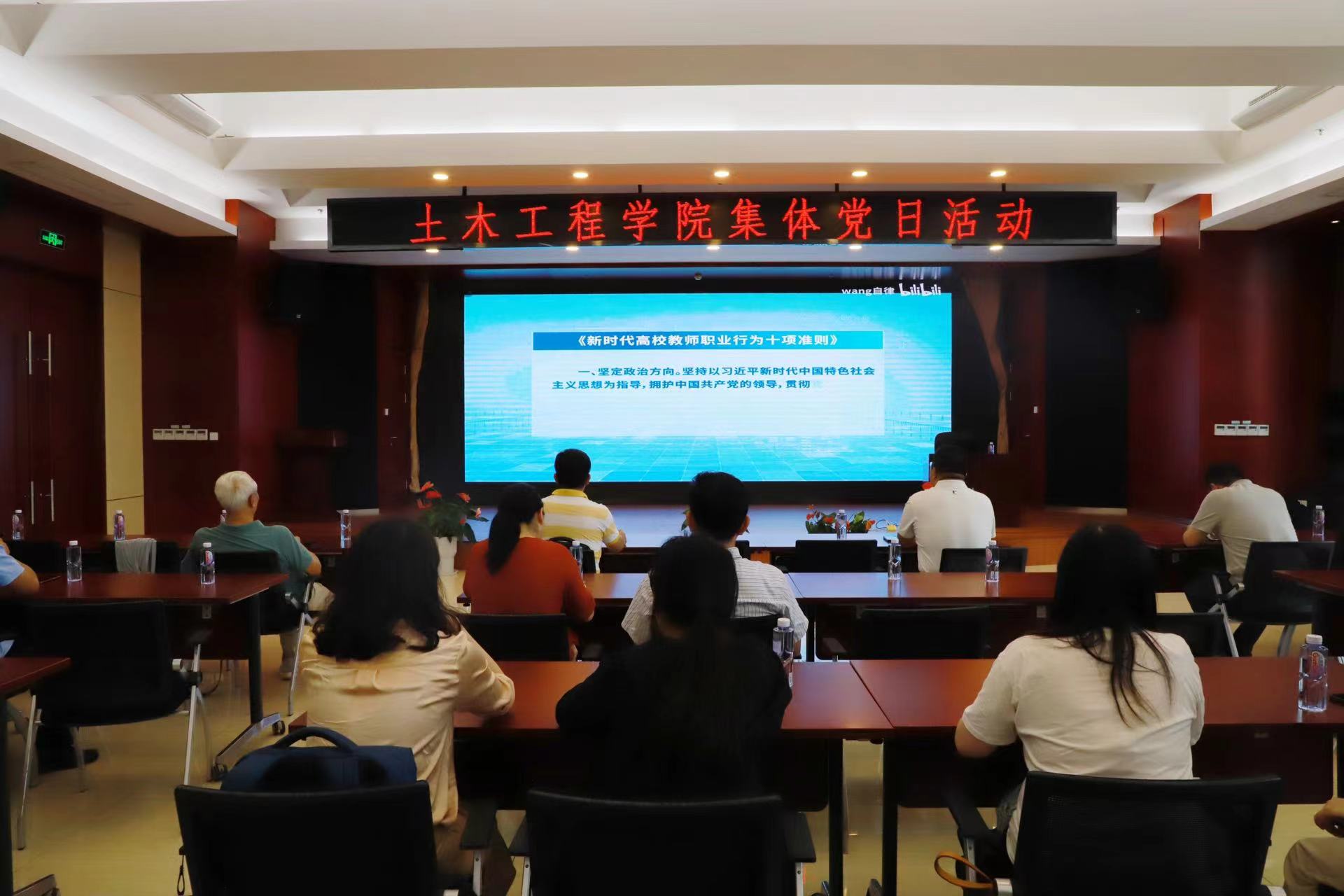 活动中,学院党委书记张涛还结合实践学习内容,围绕党纪学习教育为党员教师们上了一堂生动的专题党课。同时,为进一步加强师德师风建设,组织全体教师集中学习《新时代高校教师职业行为十项准则》、《研究生导师指导行为准则》,并特别剪辑安排观看《师德失范警示案例教育片(高校篇)》,案例涉及学术不端、师德失范、违法违纪等多个方面,通过案例分析及相关处罚情况,给在场的每一位教师敲响了警钟,提醒大家要时刻保持清醒头脑,坚守师德底线,做到以德立身、以德立学、以德施教、以德育德,严肃课堂纪律和行为准则,严守党规党纪。