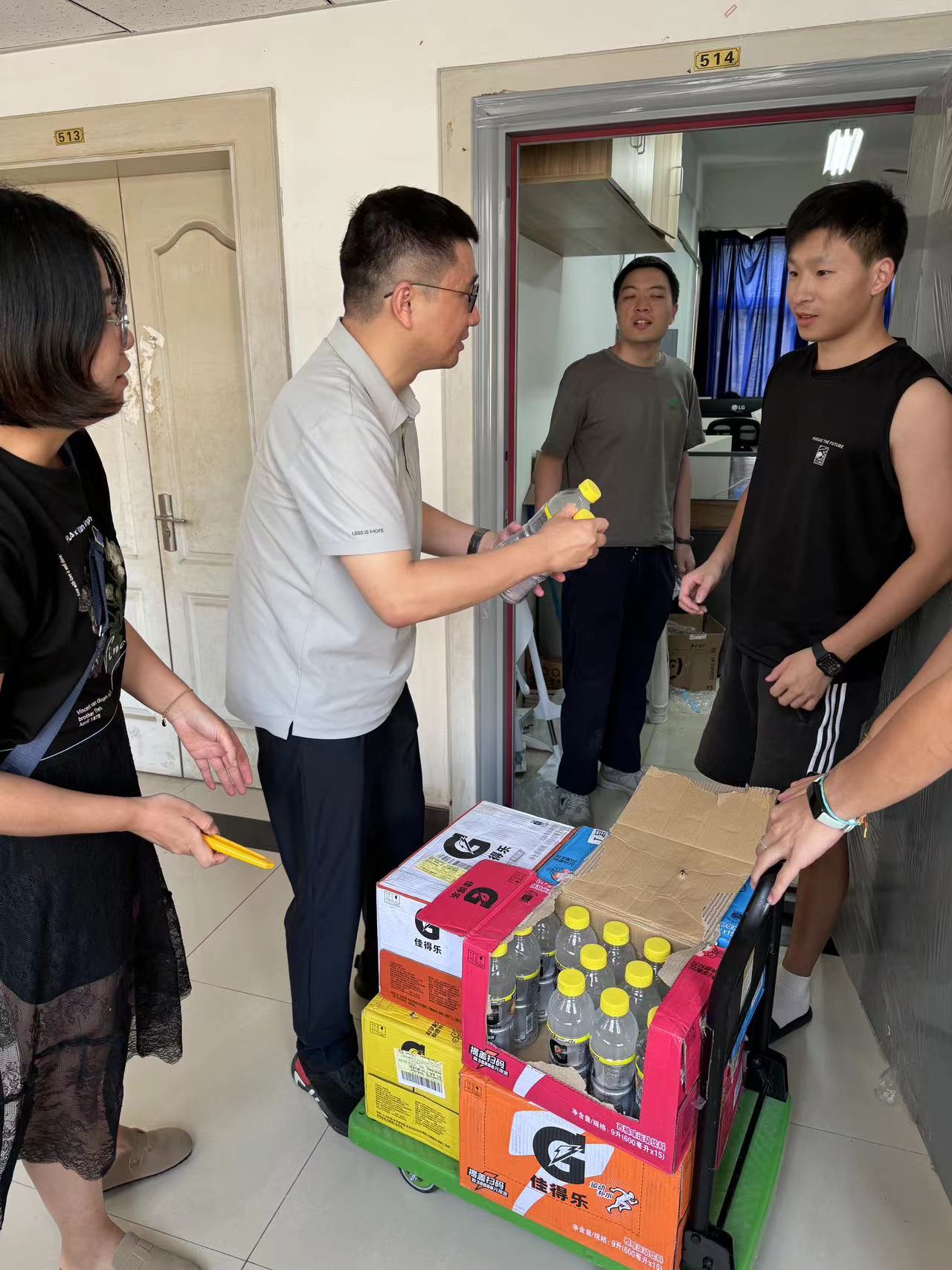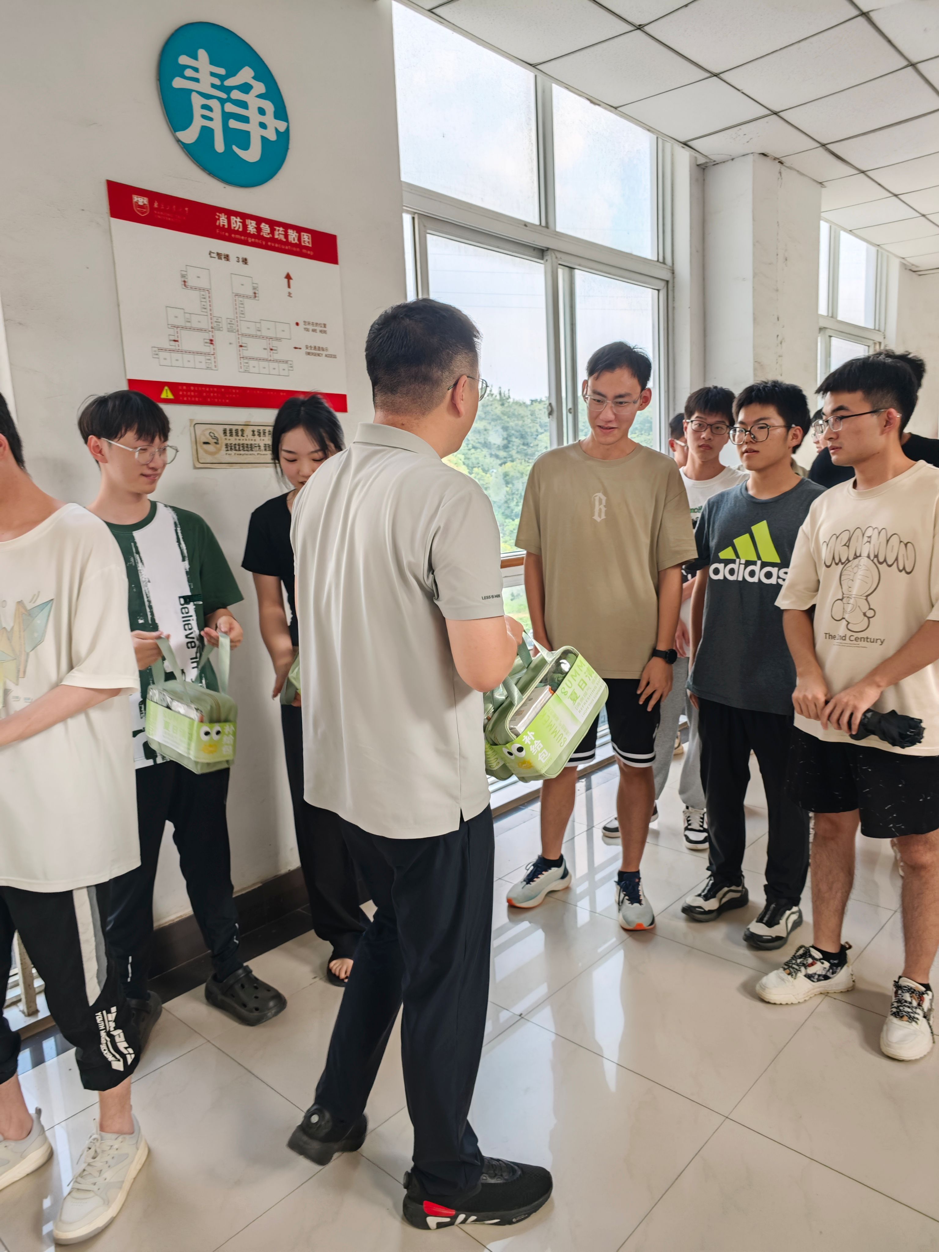 为进一步落实暑期留校学生的教育管理服务工作,了解暑期留校学生的思想学习生活情况,保障学生考研复习、科研工作、学科竞赛等工作有序开展。8月16日下午,999论坛白菜大全(分管学生工作)副院长陈鑫,毕业班辅导员谢璐璐、姜小雨,研究生辅导员汤丽娟走进仁智楼考研自习教室、学生宿舍和地坤楼研究生工作室看望慰问留校学生,并代表学院为留校学生送上解暑饮料、清凉茶、草木花露水、香皂、冰凉贴、手持小风扇、蚊不叮、毛巾等防暑降温物资。