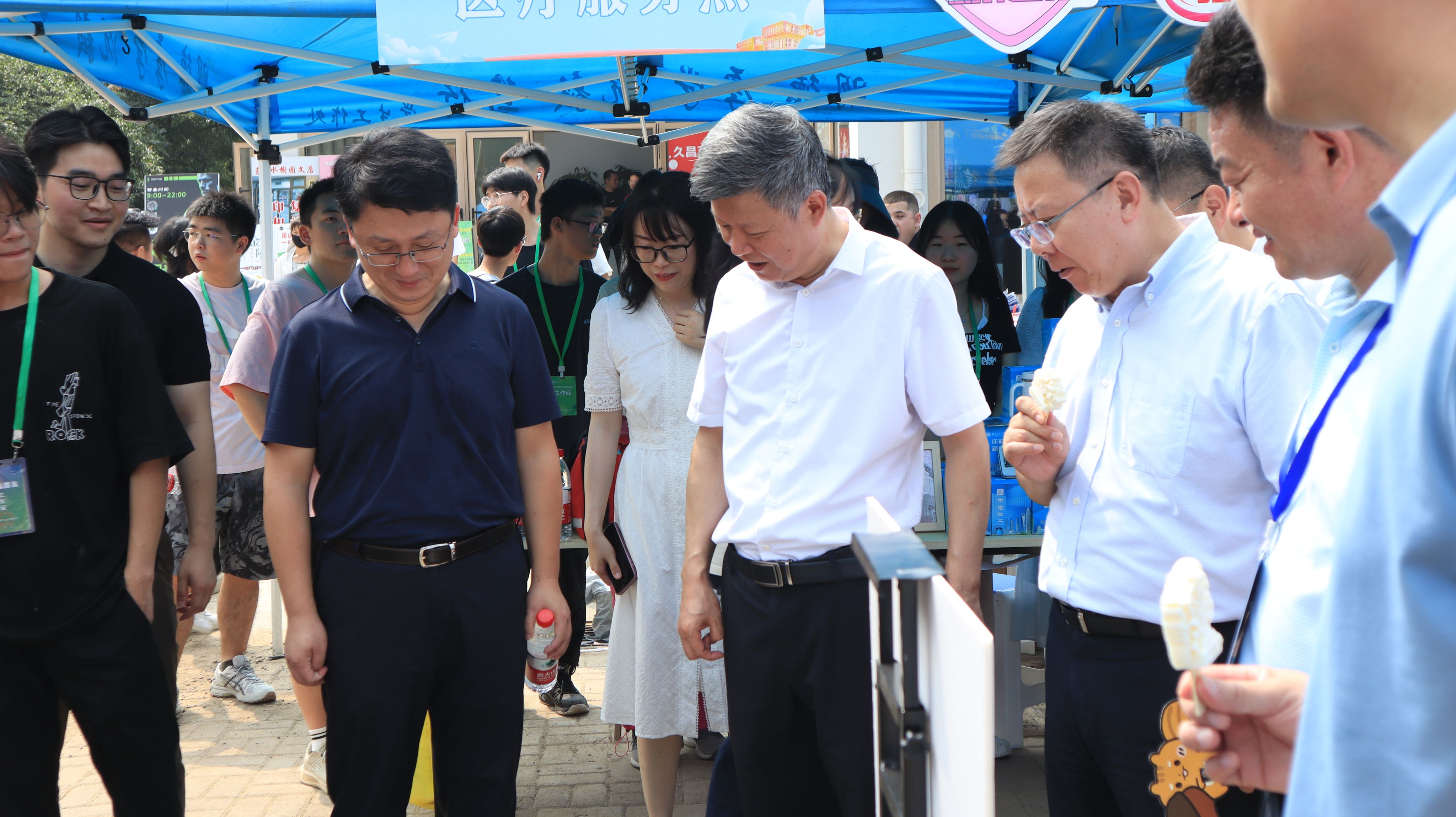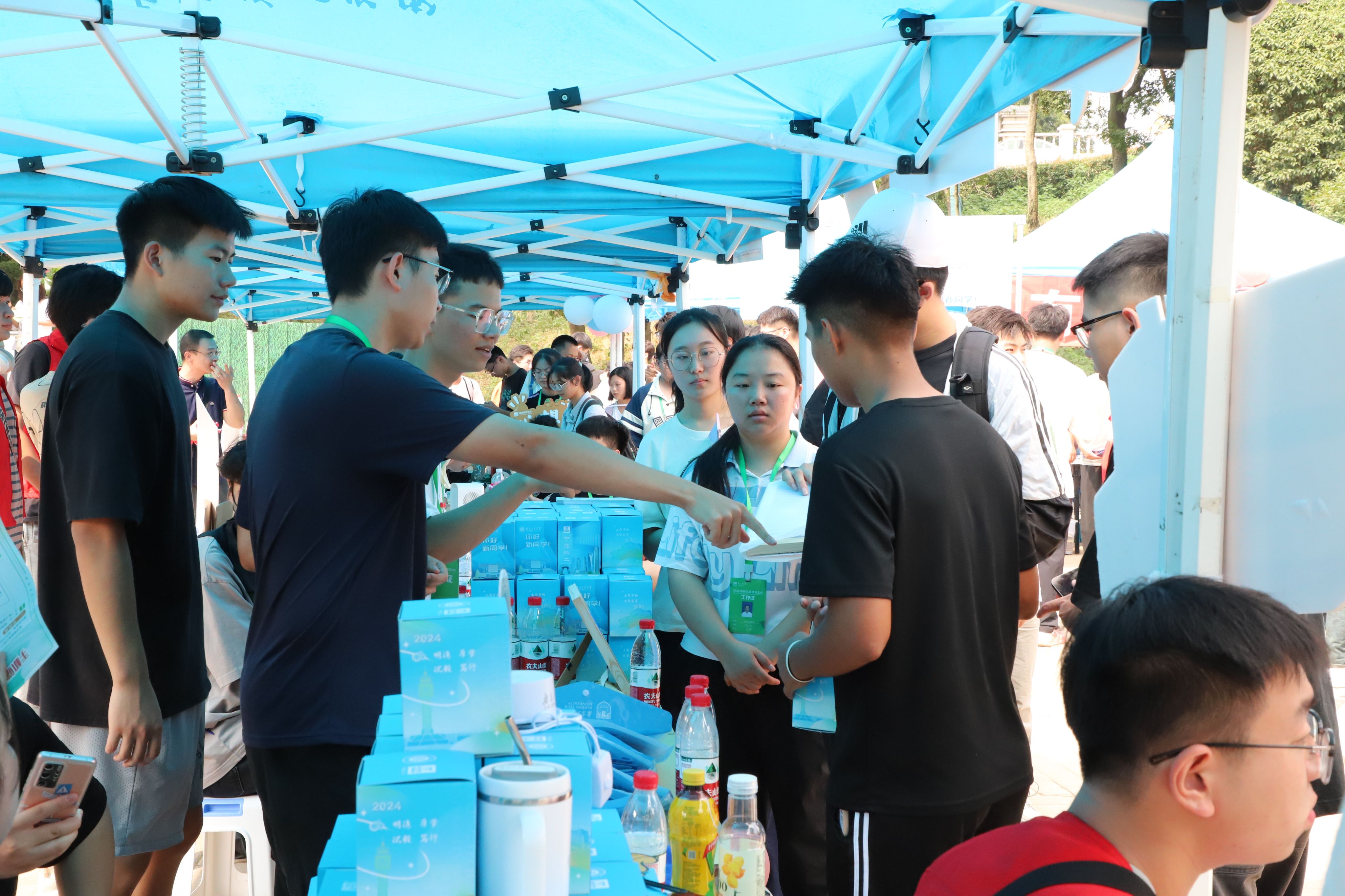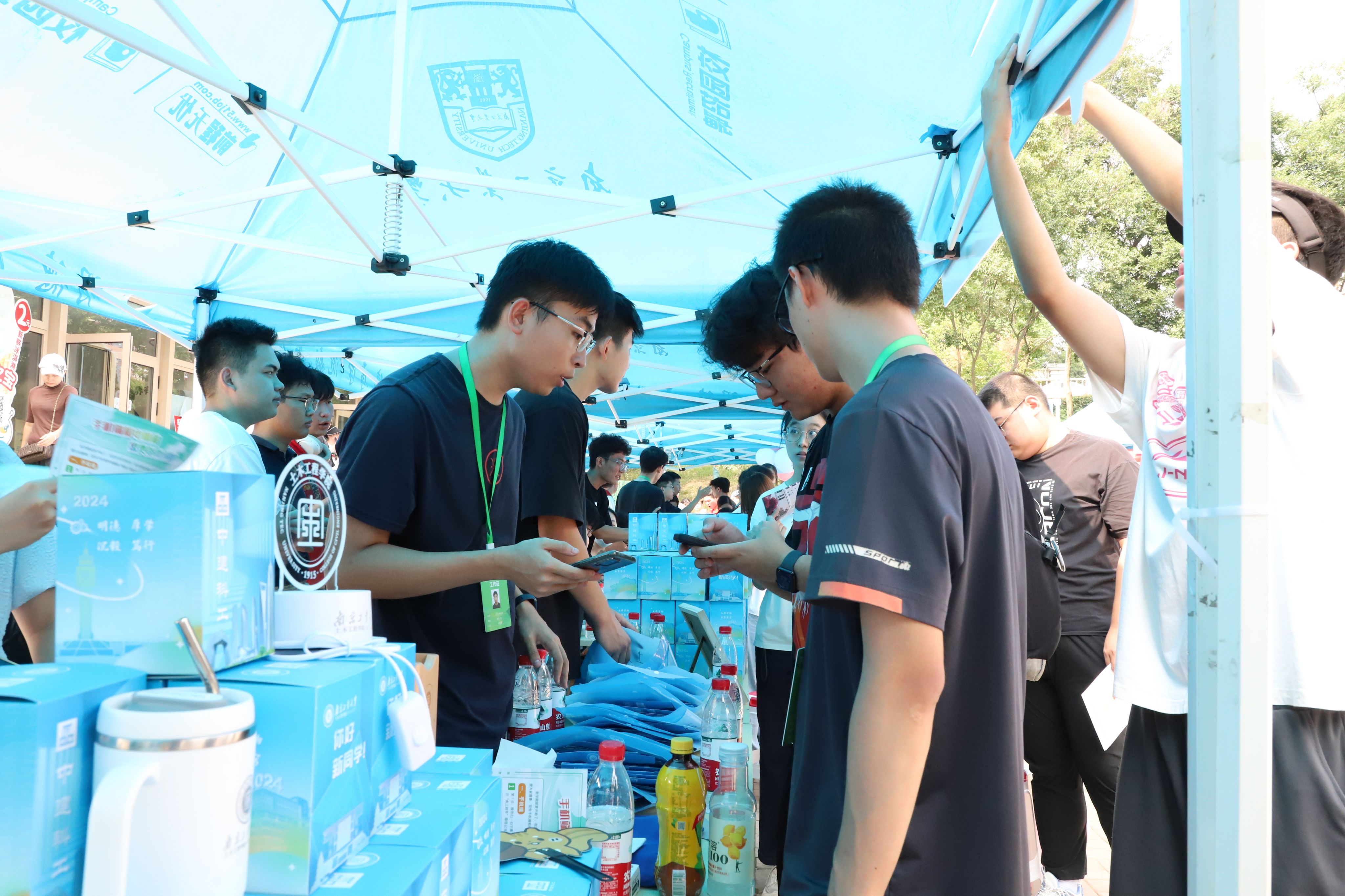 报到现场,学院与中建科工集团联合准备迎新礼物——一个带有美好寓意的定制盲盒礼物、一份定制信封、一件定制的专属班服。同时,学院还提供了可签名的迎新背景板,以便记录精彩的报到时刻。