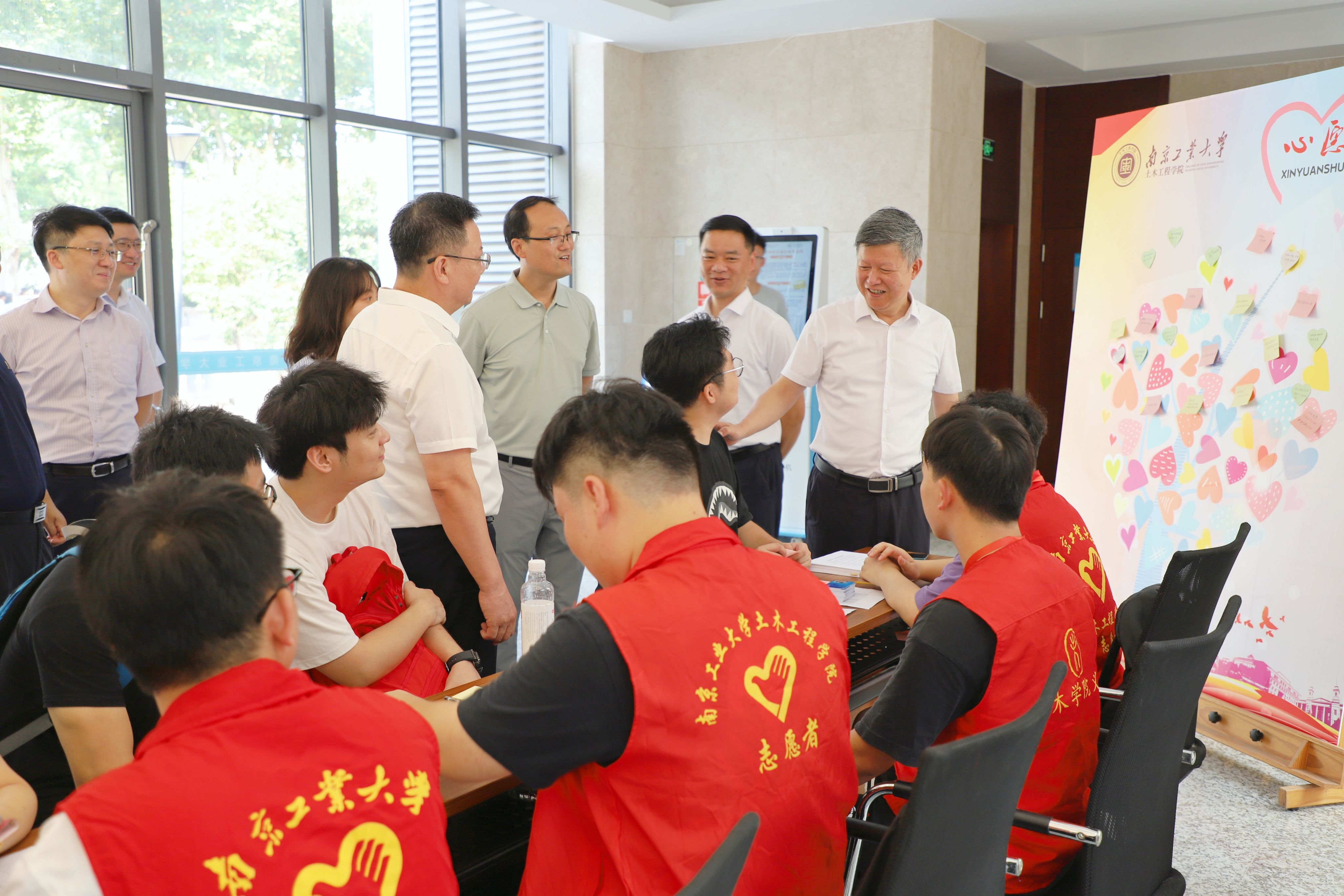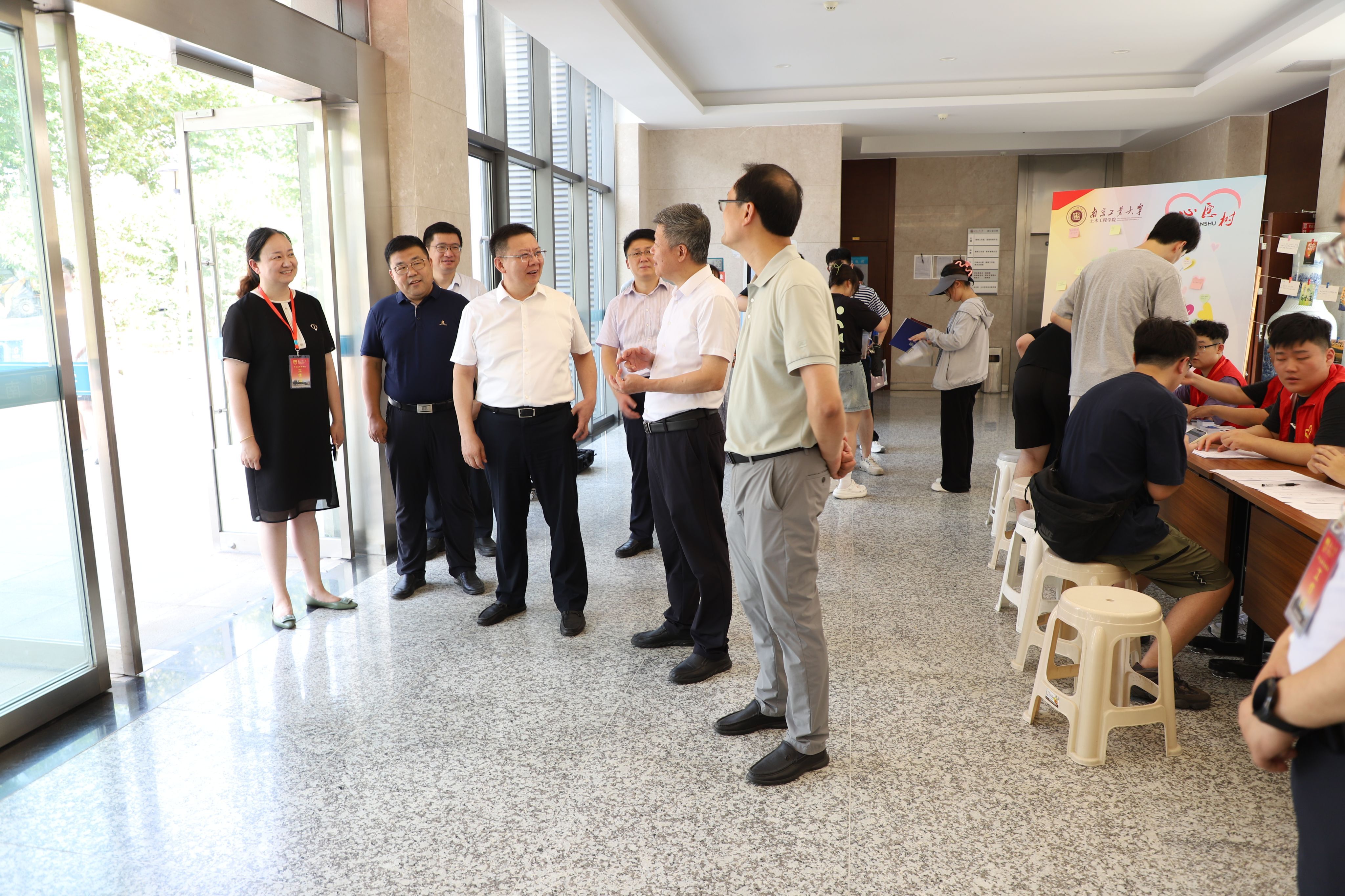校党委书记芮鸿岩、校长蒋军成、副校长刘大卫、副校长戴志晖、党委办公室、校长办公室、研究生院领导亲临土木学院迎新现场,详细了解新生报到情况,慰问奋战在一线的迎新老师和志愿者,并勉励同学们要聚焦科技前沿,勇担时代使命,筑梦研途征程。