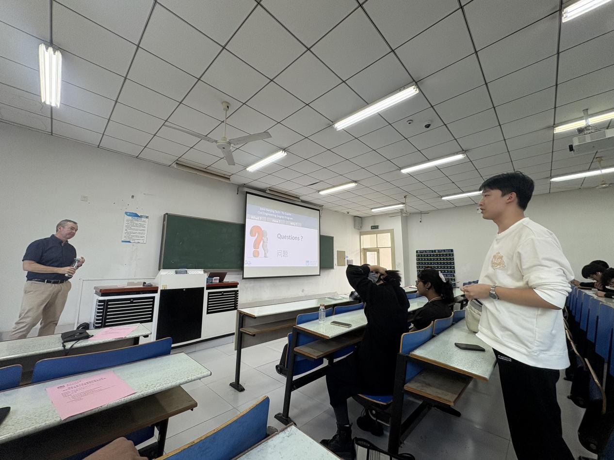 国际合作处金薇老师详细阐述了中爱合作办学项目的办学优势、培养模式、出国要求及出国准备工作。校友何明月分享了出国相关事宜及签证办理要求等方面的知识。外方教师代表、都柏林理工大学Liam教授向大家介绍了在爱尔兰的学业、生活和文化等方面的信息,进一步激发了同学们的兴趣,现场气氛热烈,同学们积极提问。