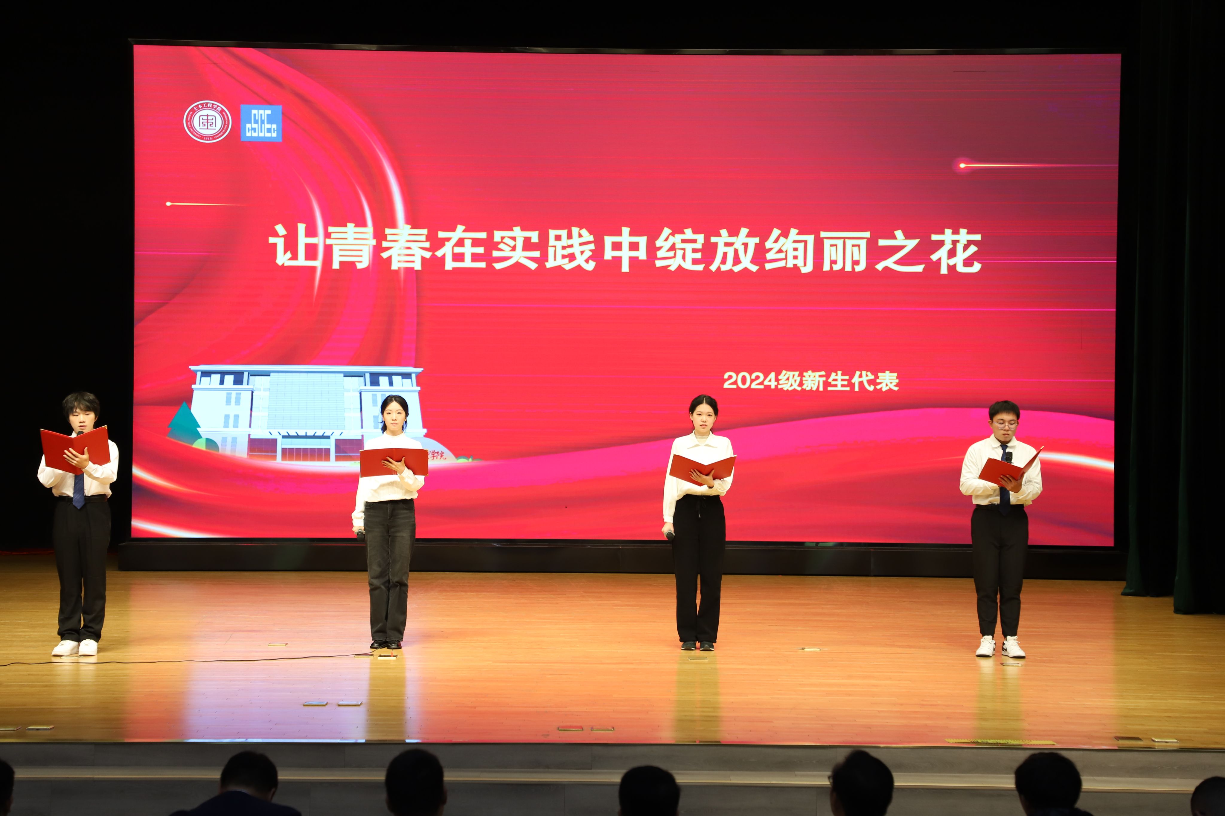 活动在新生朗诵《让青春在实践中绽放绚丽之花》中拉开帷幕。院党委书记张涛在致辞中对全体新生表示热烈欢迎,希望全体新生坚定理想信念、夯实专业基础、把握时代机遇,在新时代发展中“挑大梁”、“当主角”。