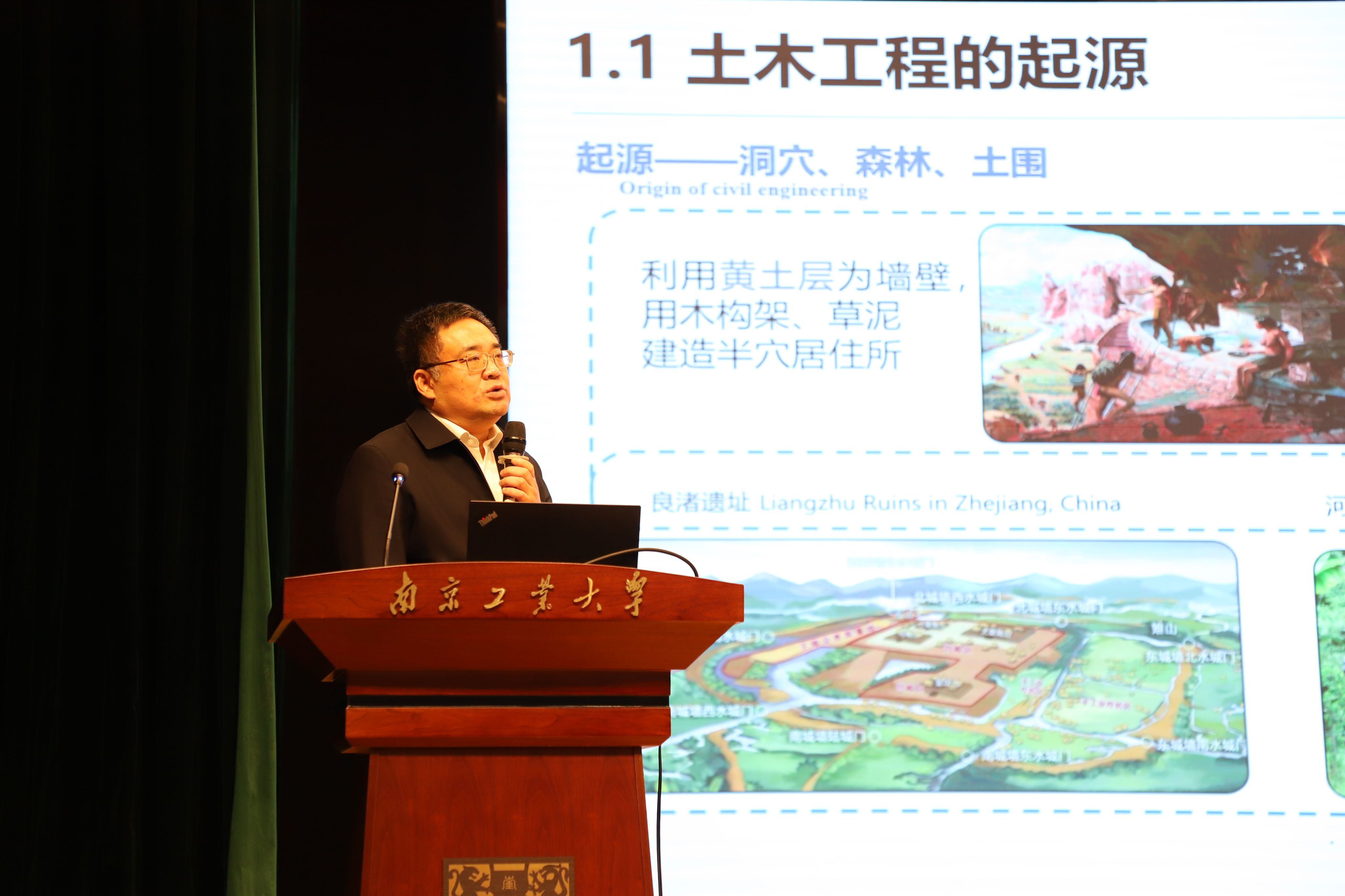 梦想公开课分爱国信仰、立志成才、志愿实践三个篇章。爱国信仰篇章中,陆伟东副校长以《绿色智能土木工程》为题给同学们上第一课,介绍、展示了绿色智能土木工程内涵特征、创新培养模式以及未来发展方向。陆校长寄语全体新生,希望同学们功崇惟志,构建坚定理想信念之梁,成长为胸怀“国之大者”的大国民;守正创新,构建练就过硬本领之梁,成长为传承“工匠精神”的践行者;行胜于言,构建涵养奋斗品质之梁,成长为敢于“自找苦吃”的实干派。随后,校“师德十佳”、马克思主义学院赖继年老师、研支团成员刘明龙同学分别从不同视角诠释了树立崇高信仰的重要性;在立志成才篇中,挑战杯获奖团队代表、发表高水平论文本科生代表、结构设计竞赛获奖同学代表和省先进班级班长代表分别分享了他们成长成才的经历与感想;在志愿实践篇中,相关社会实践、生产实习团队分享了在实践中体悟工匠精神的难忘经历。期间,还举行了中建科工集团迎新物资捐赠仪式和创新创业竞赛、院“最美实习生”、省级先进个人和先进集体颁奖仪式。活动在新生合唱《我们都是追梦人》中圆满落幕。