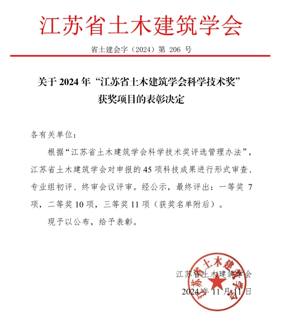 近日,江苏省土木建筑学会公布了2024年度“江苏省土木建筑学会科学技术奖”评审结果,我院陆伟东教授以999策略白菜手机论坛为第一完成单位牵头完成的“多高层木—混凝土组合结构建筑建造关键技术研究与应用”,荣获江苏省土木建筑学会科学技术一等奖。