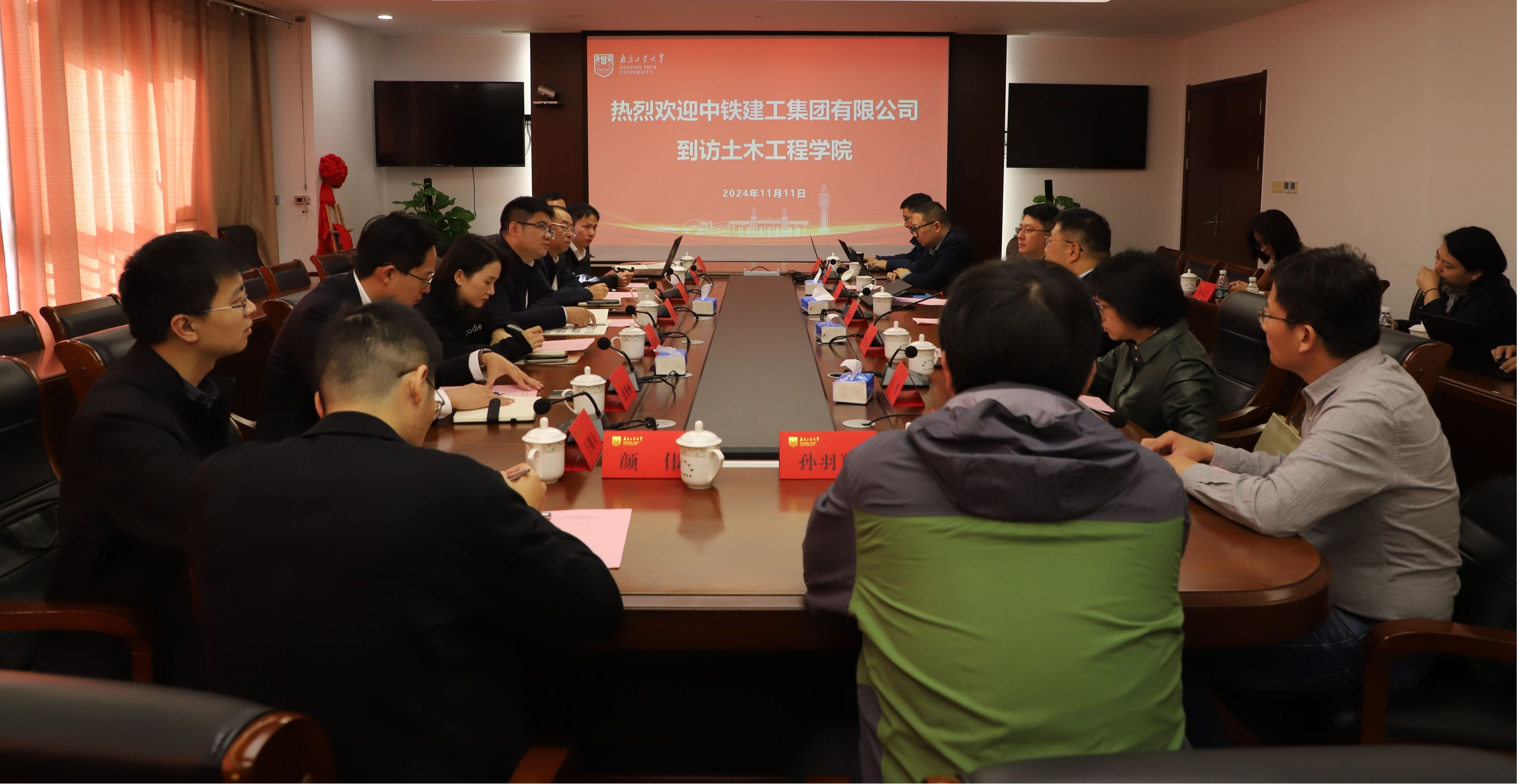 1111日上午,中铁建工集团有限公司-999策略白菜手机论坛校企对接交流会在江浦校区立德楼101会议室举行。中铁建工南京分公司总工程师吴廷勇、南京北站指挥部书记杜建兵、南京北站总工程师黄功坤、江北新区营销经理张俊材、南京分工程管理中心主任洪良、南京分公司科技部长王明玉、南京分公司科技主管孙羽翔,江北新区建设与交通局建设工程管理办科长周丹丹、副科长颜伟,999策略白菜手机论坛党委常委、副校长陆伟东,999论坛白菜大全领导班子成员及系主任、支部书记代表参加交流会。会议由999论坛白菜大全党委书记张涛主持。