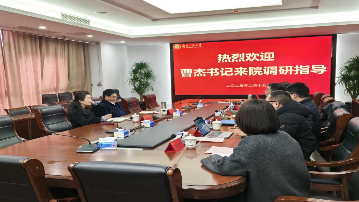 张涛书记首先对曹杰书记一行的到来表示热烈欢迎,并逐一介绍了我院领导班子成员。院长方海详细介绍了土木学院的历史沿革、学科建设、人才培养及科学研究等总体情况,党委书记张涛汇报了我院党委近年来在加强党的建设、组织建设、立德树人以及党风廉政建设等方面所取得的进展。