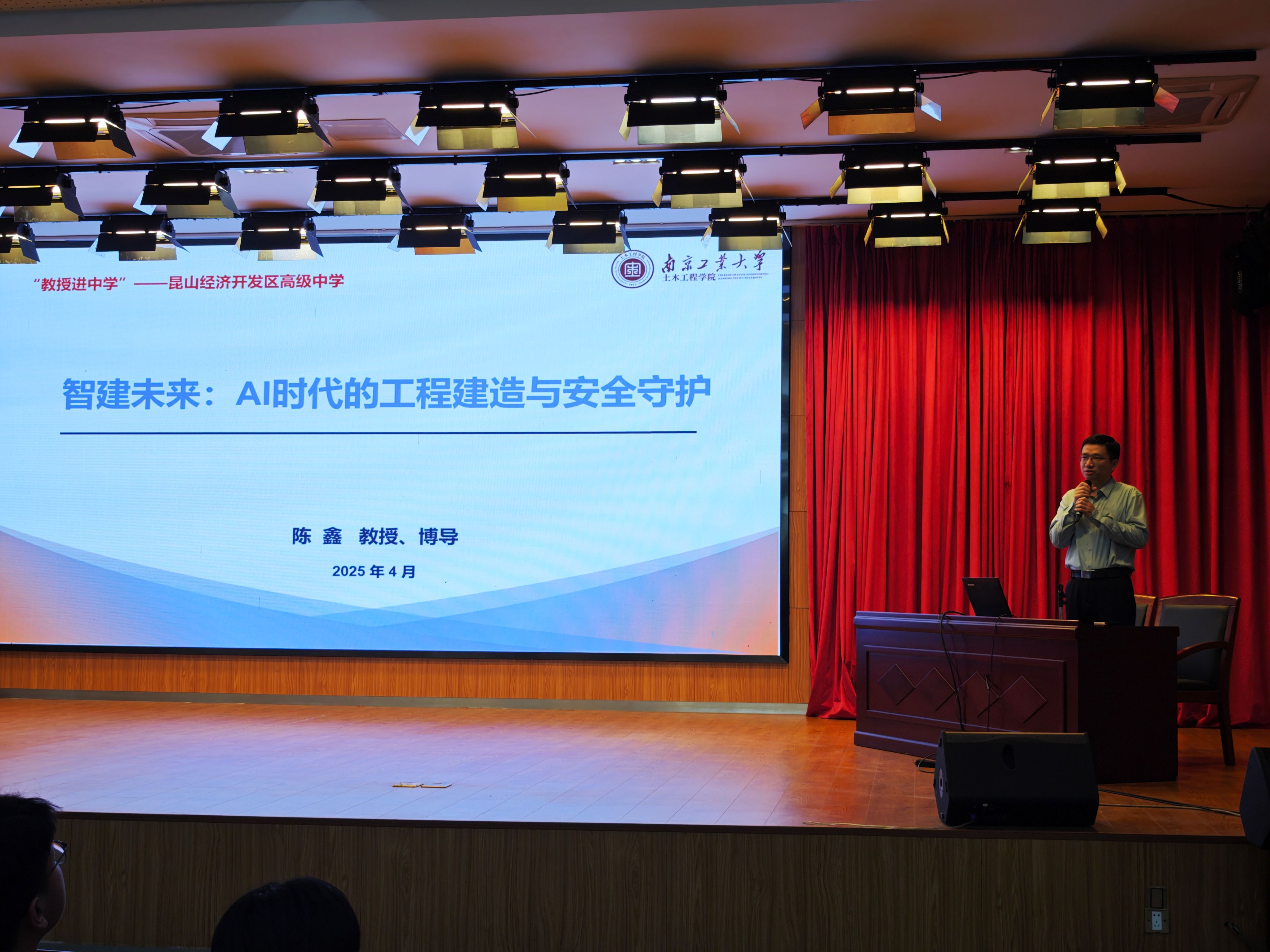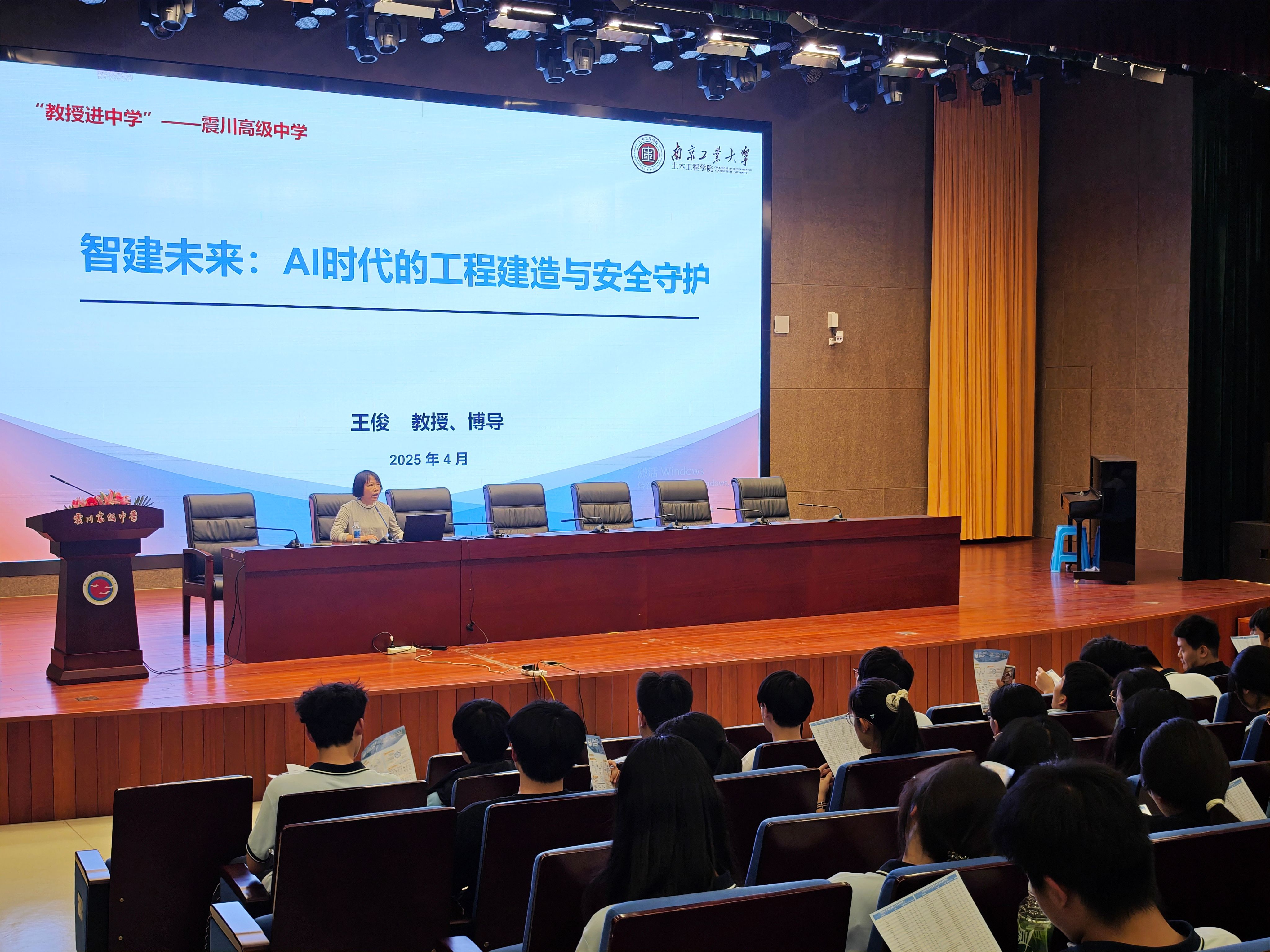 科技创新进校园:构建人才培养前置路径。学院教授团队先后走进昆山震川高级中学、昆山经济开发区高级中学,面向千余名中学生开展专业科普,学院工作组现场发放招生宣传材料。王俊、陈鑫两位教授以《AI时代的工程建造与安全守护》为主题,通过智能监测预警系统、3D打印建筑模型等实物演示,解析数字技术在土木工程领域的创新应用。活动期间,学院与两所中学签署《科技创新竞赛合作协议》,未来将联合开发工程创新课程,组建由高校教授、中学教师构成的“双导师团”,常态化指导中学生开展智能建造、结构设计等比赛竞赛。昆山震川高级中学校党委书记韩剑峰、校长李小峰、副校长沈磊、党政办主任姚进,昆山经济开发区高级中学副校长温艺铭、教务主任张峰等老师出席活动。