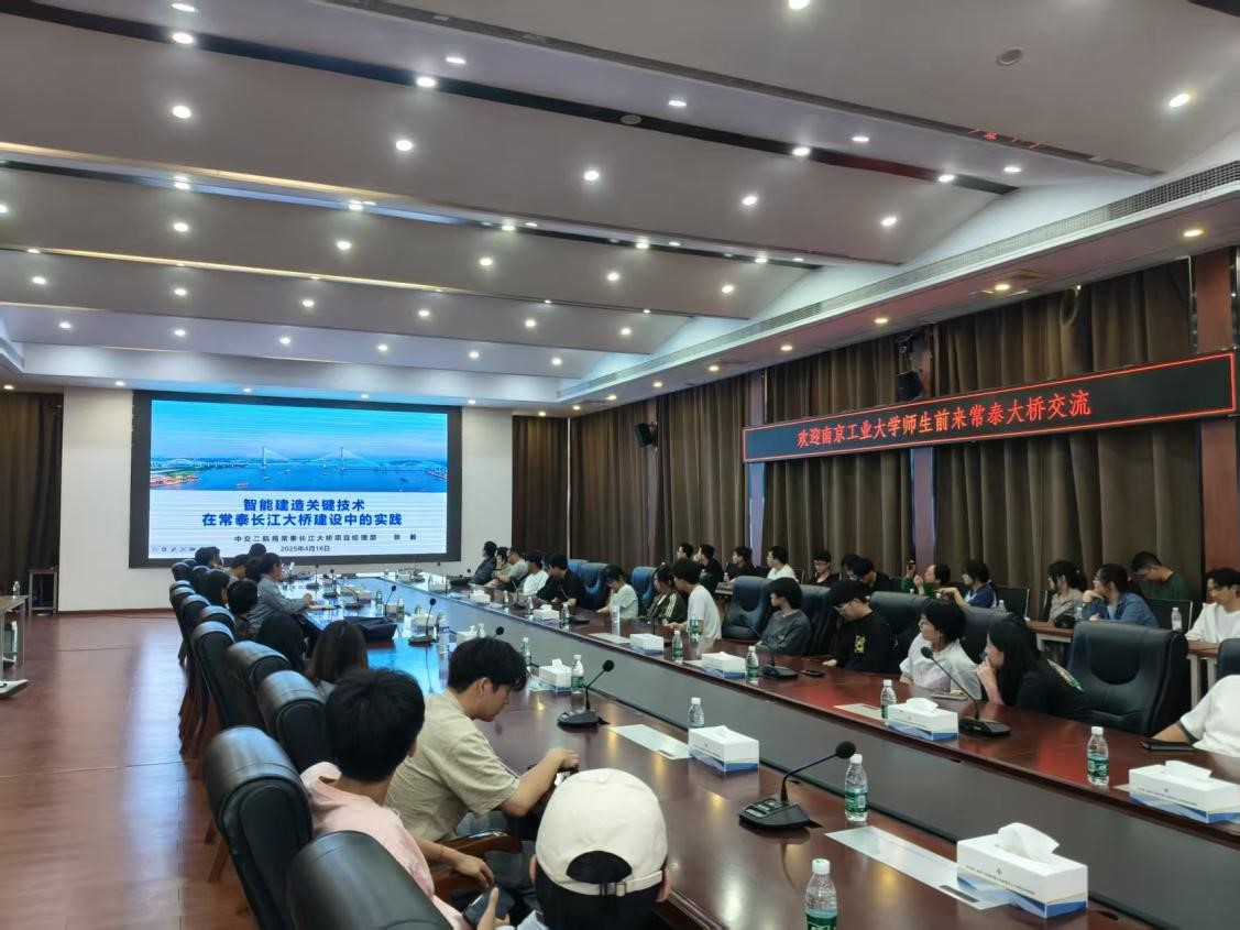 在项目大会议室,中交二航局项目副总工张毅以《智能建造技术在常泰大桥的运用与实践》为题,从技术攻坚、生态保护、智能建造三个维度全景式展现了超级工程背后的故事。“每一个数据背后都是成百上千次试验,每一道工序都凝聚着建设者的匠心,这就是大国工程的品质追求。”张毅的话引发了现场师生的热烈掌声。互动环节中,学生们围绕“智能建造技术在桥梁的应用”“数字孪生技术平台如何实时监控”等问题踊跃提问。