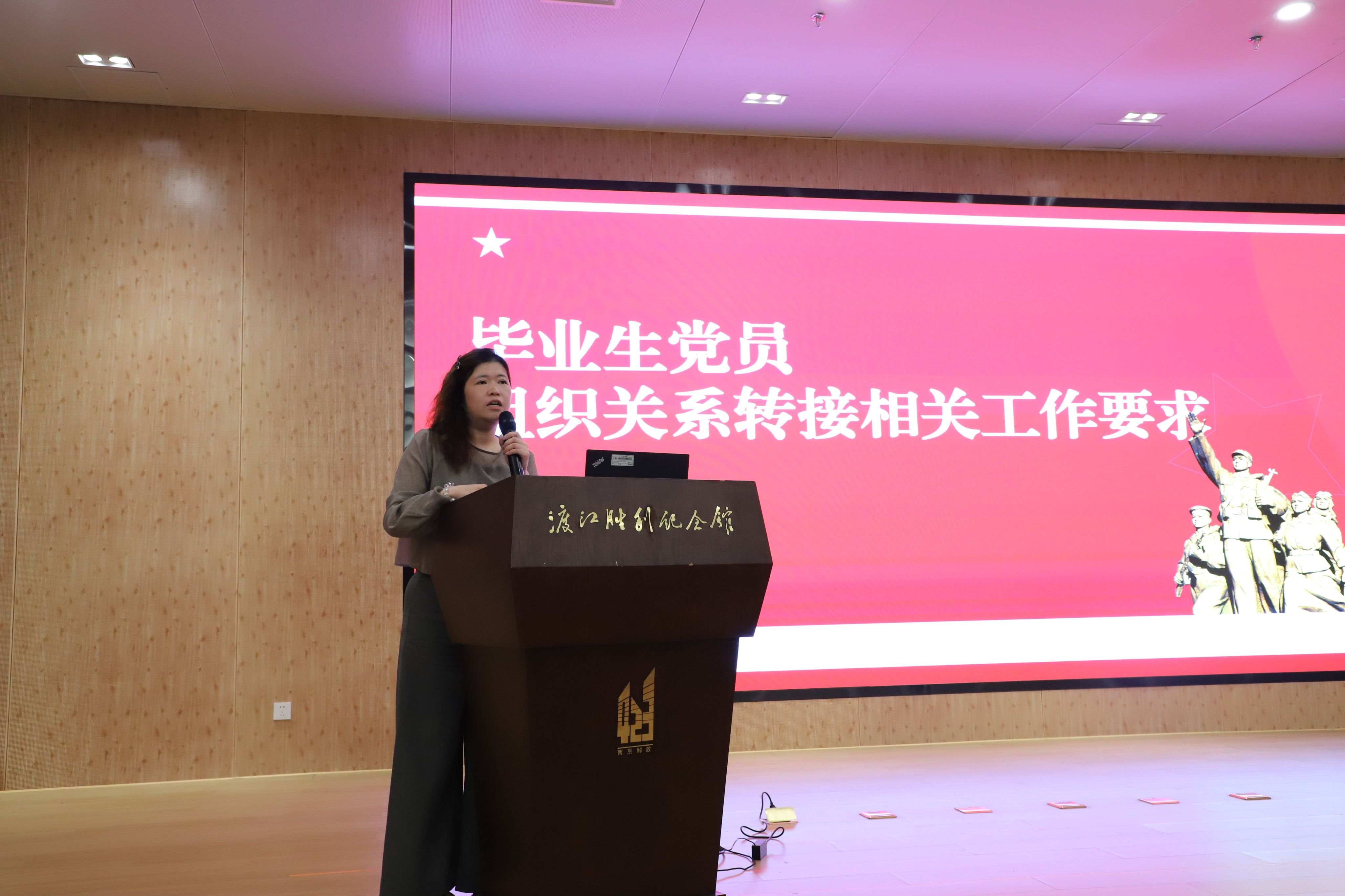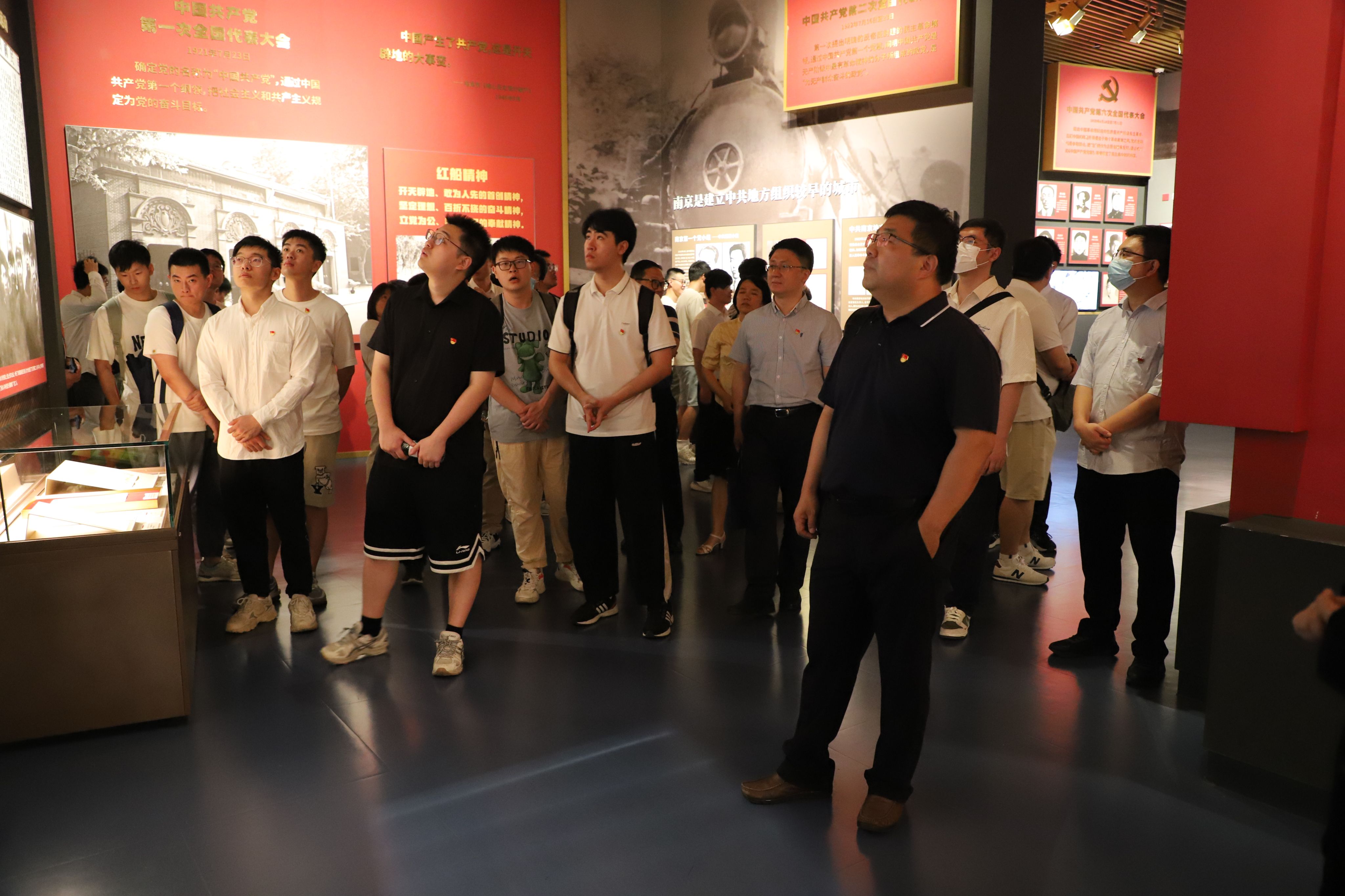 活动伊始,毕业生党员分两批有序参观渡江胜利纪念馆与党史纪念馆。通过一幅幅历史照片、一件件珍贵文物,党员们深刻感悟“百万雄师过大江”的壮阔历程与中国共产党人“将革命进行到底”的坚定信念。在渡江胜利纪念馆多功能厅,全体党员齐声高唱《义勇军进行曲》,嘹亮的歌声回荡在长江之畔,彰显新时代青年党员的爱国情怀。