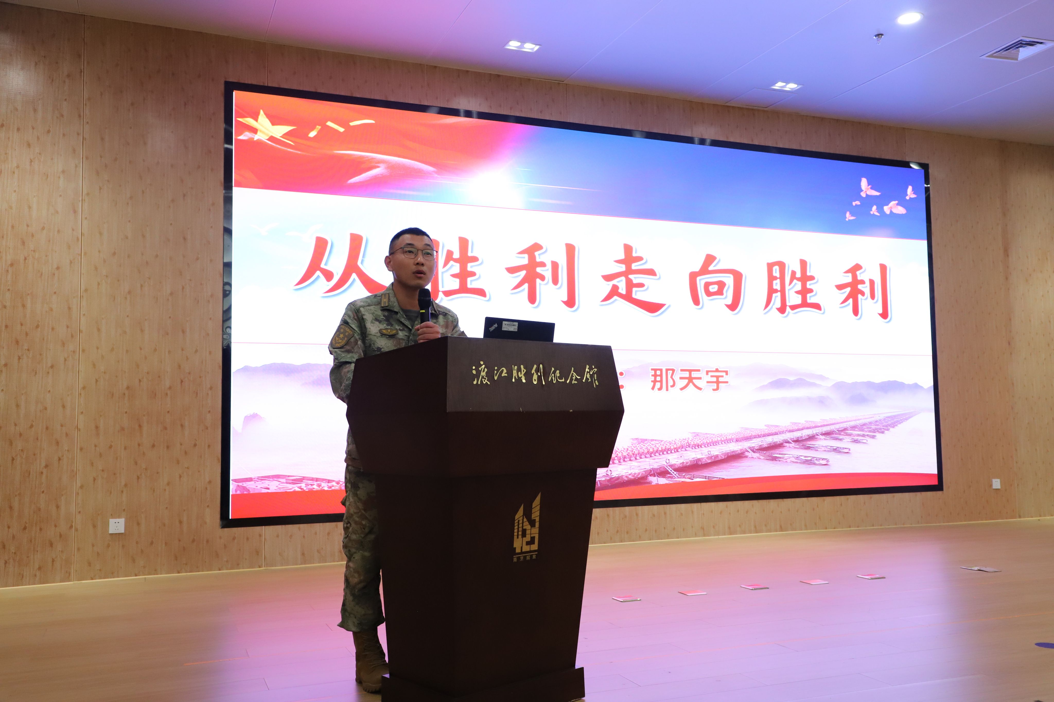 学院特别邀请东部战区73211部队政治教导员那天宇给毕业班党员讲授《从胜利走向胜利》专题党课。那天宇以革命先辈英勇事迹为切入点,结合当代军人保家卫国的使命担当,勉励毕业生党员永葆“一不怕苦、二不怕死”的战斗精神,将个人理想融入强国强军实践。随后,毕业班党员代表深情朗诵《到祖国最需要的地方去》,铿锵有力的誓言表达出投身基层、建功立业的坚定决心。