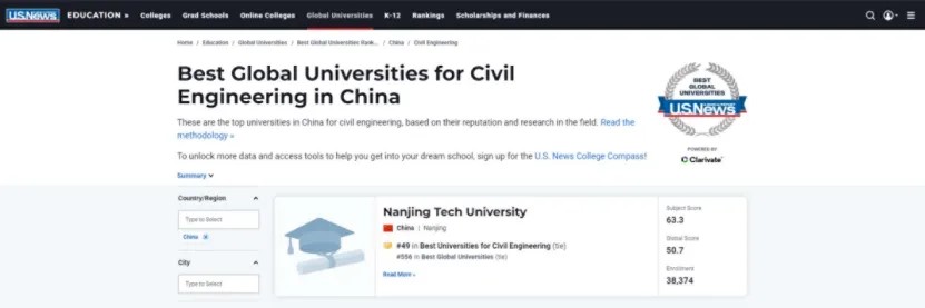 近日,《U.S. News 2025-2026年世界大学学科排名》正式发布。白菜官网土木工程学科跻身全球前50(排49)(详情见https://www.usnews.com/education/best-global-universities/china/civil-engineering),充分彰显了学科强劲的国际竞争力和学术声誉。