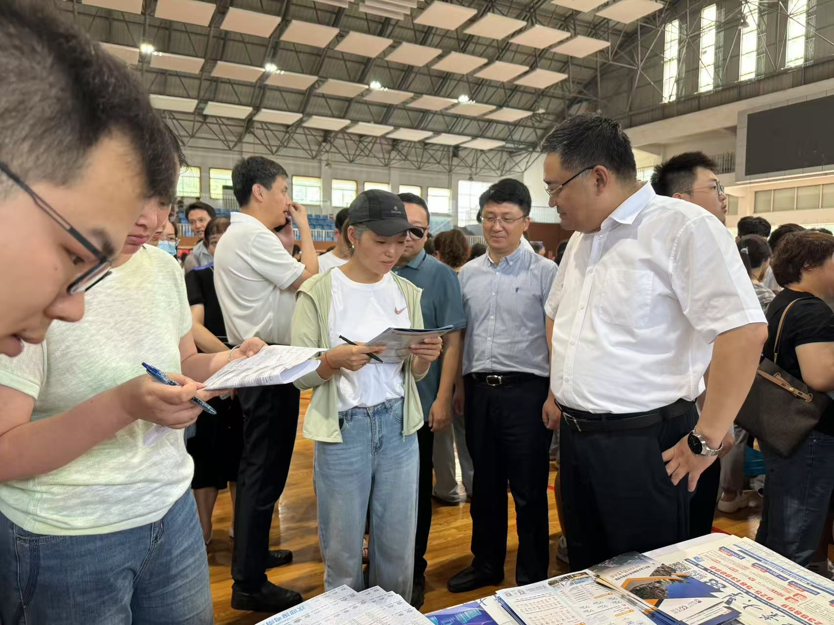 在梁丰高级中学座谈、在梁丰中学体育馆招生现场