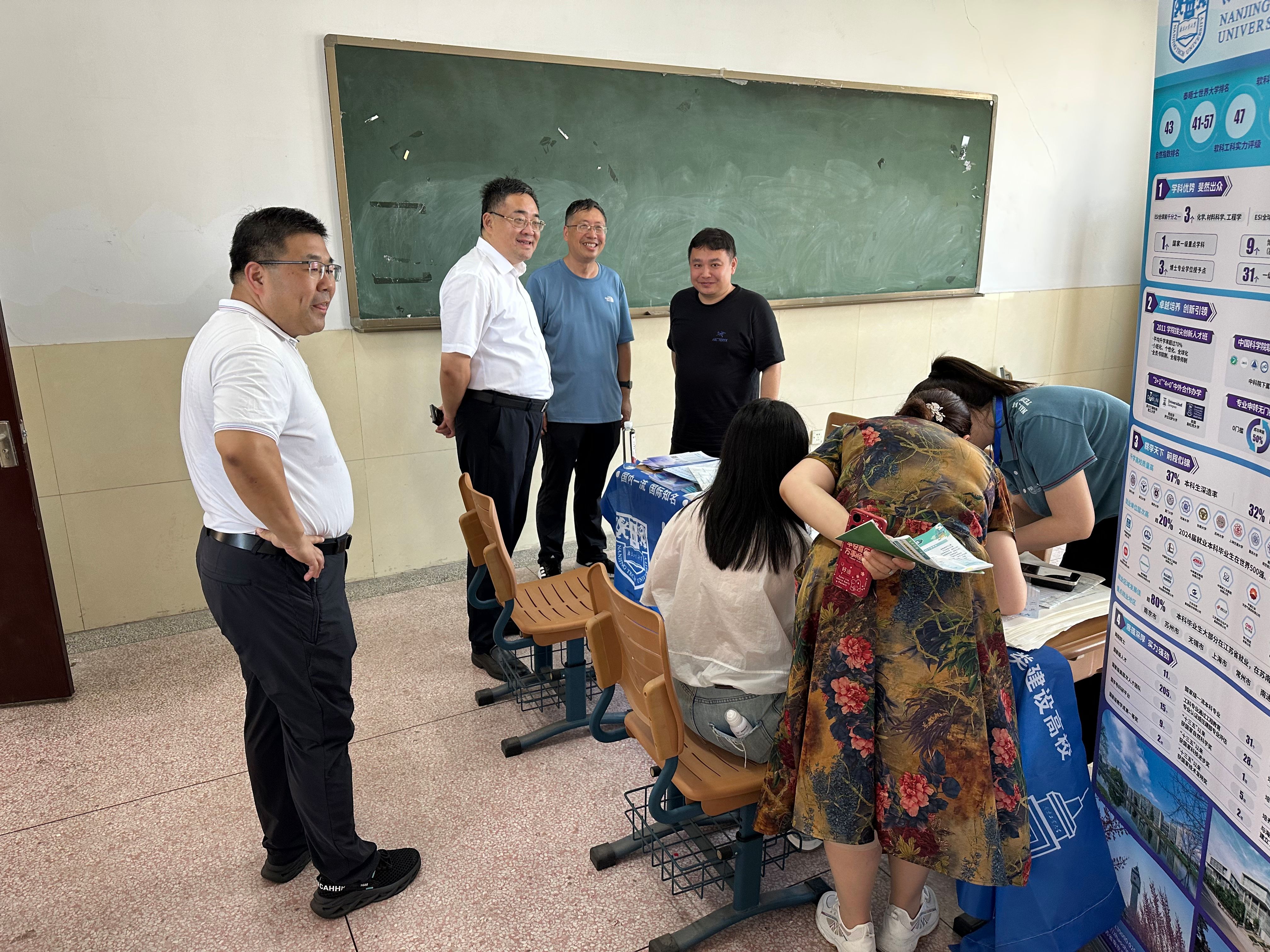 在常熟市中学,陆伟东副校长慰问一线招生教师并现场指导宣传工作。在常熟市中学领导陪同下,陆伟东副校长一行参观了校史馆,对该校的办学历史和育人成果给予高度评价。座谈会上,双方围绕创新人才培养展开深入交流。陆校长介绍了学校办学特色,并提出三点合作建议:组建“科普宣讲团”开展前沿科技讲座;共建创新大赛萌芽赛道;共享优质科研资源。他强调,学校正推进“AI+专业”教育改革,致力培养复合型人才。会上,陆校长颁发“优质生源”喜报,999论坛白菜大全党委书记张涛表示将持续深化两校在科创与人才培养方面的合作。
