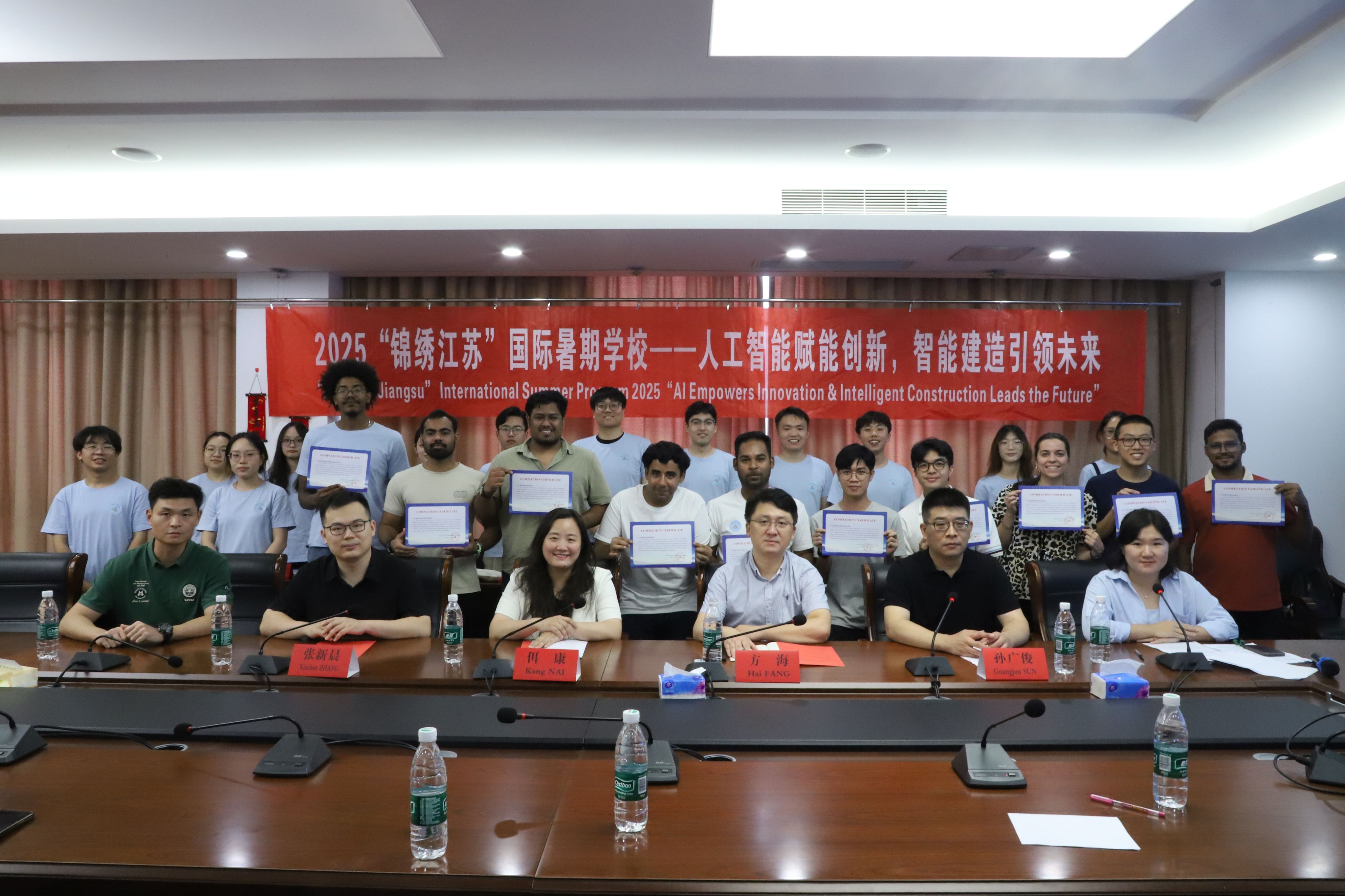 711日,2025“锦绣江苏”国际暑期学校结业典礼在立德楼101会议室举行。本次典礼由999论坛白菜大全院长助理孙广俊主持,国际合作处处长、海外教育学院院长佴康,999论坛白菜大全院长方海,建筑工程系副主任张新晨等出席。