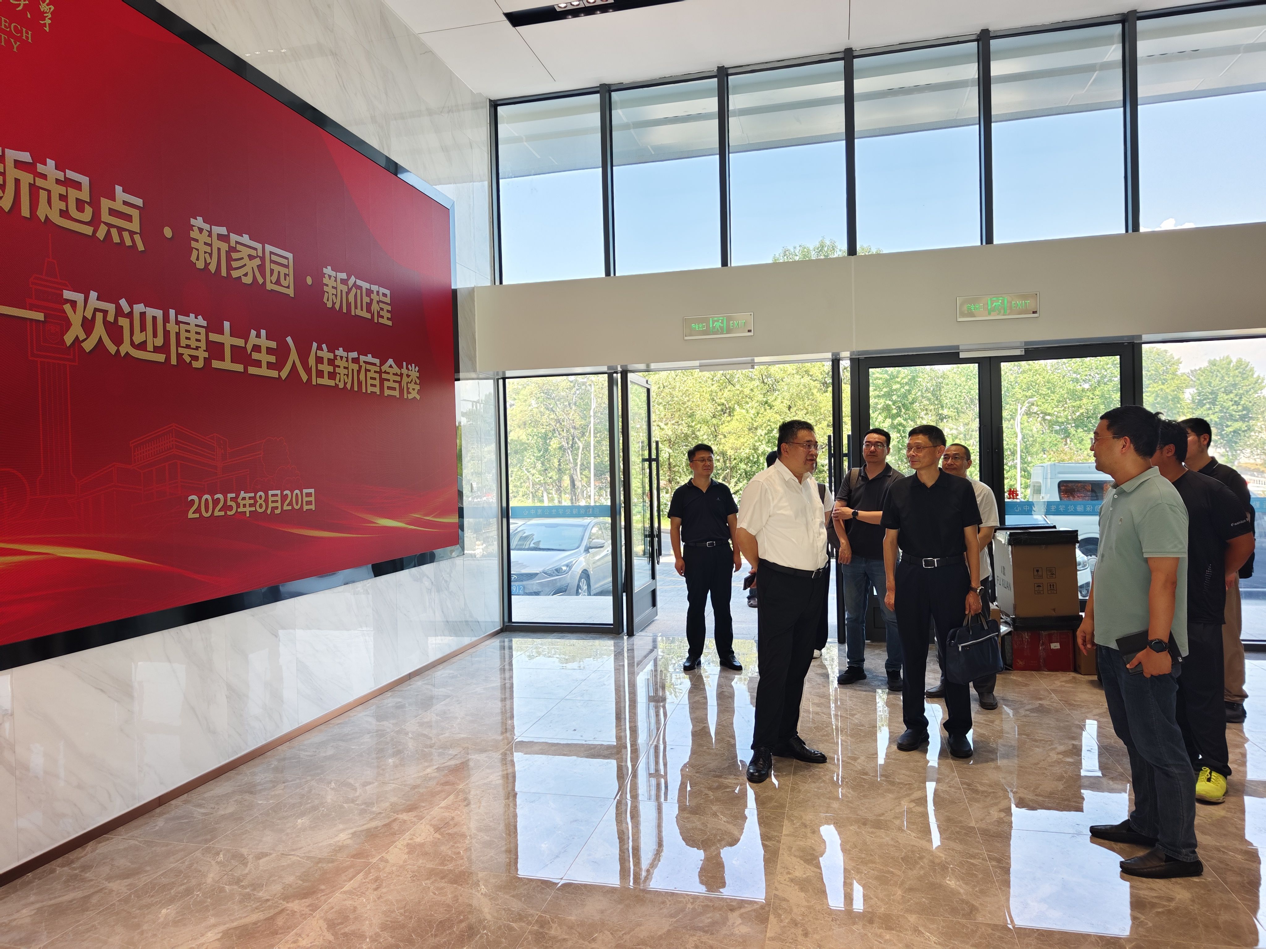 会前,陆校长带领江苏省公建中心一行参观了北苑学生宿舍楼。