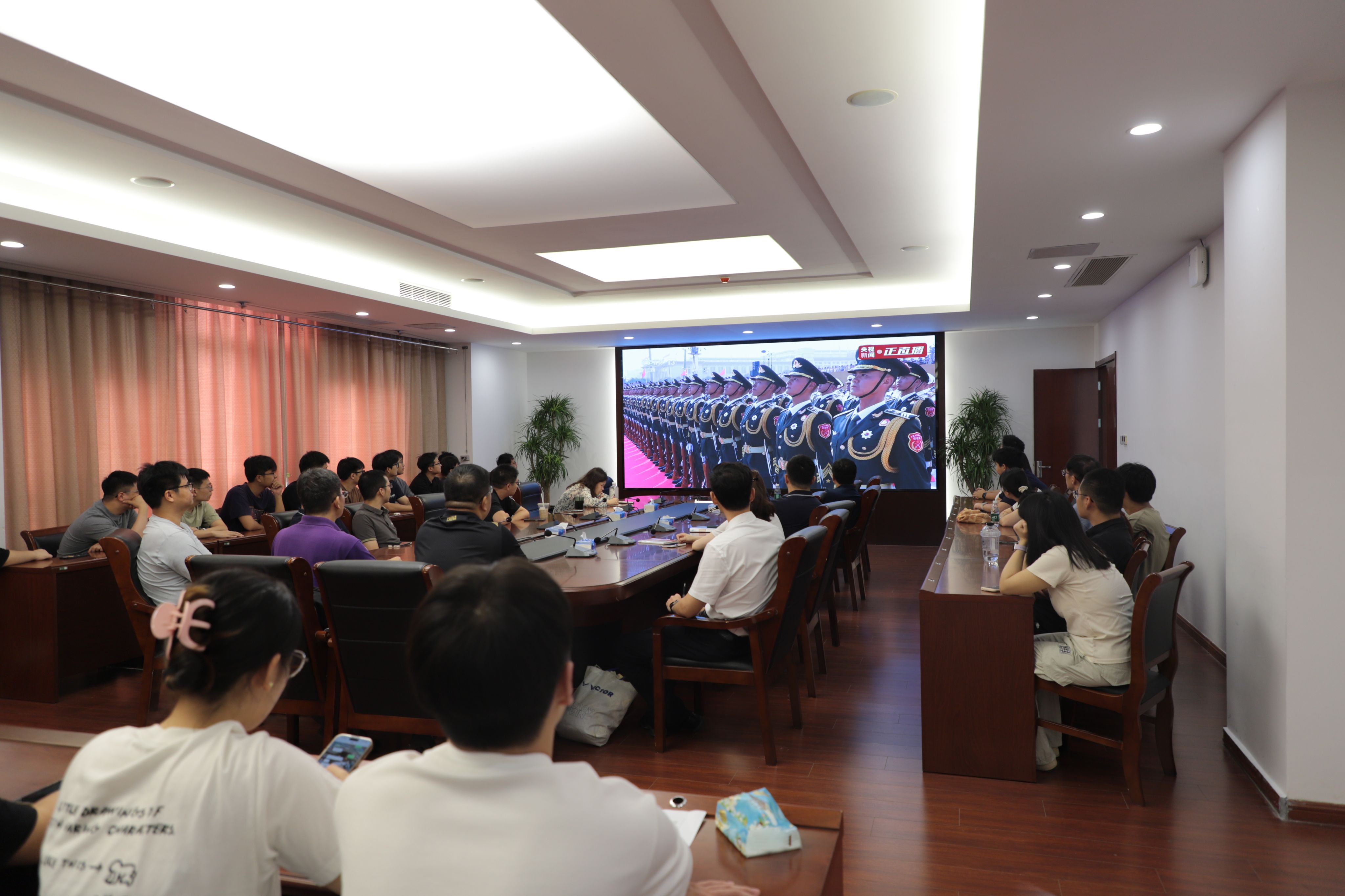 铭记伟大历史胜利,凝聚正义和平力量。9月3日上午,纪念中国人民抗日战争暨世界反法西斯战争胜利80周年大会在北京天安门广场隆重举行,以盛大阅兵仪式,同世界人民一道纪念这个伟大的日子,共同开创更加光明的未来。999论坛白菜大全师生同步观礼,在立德楼101、105会议室一起感受中华国威,铭记责任担当。