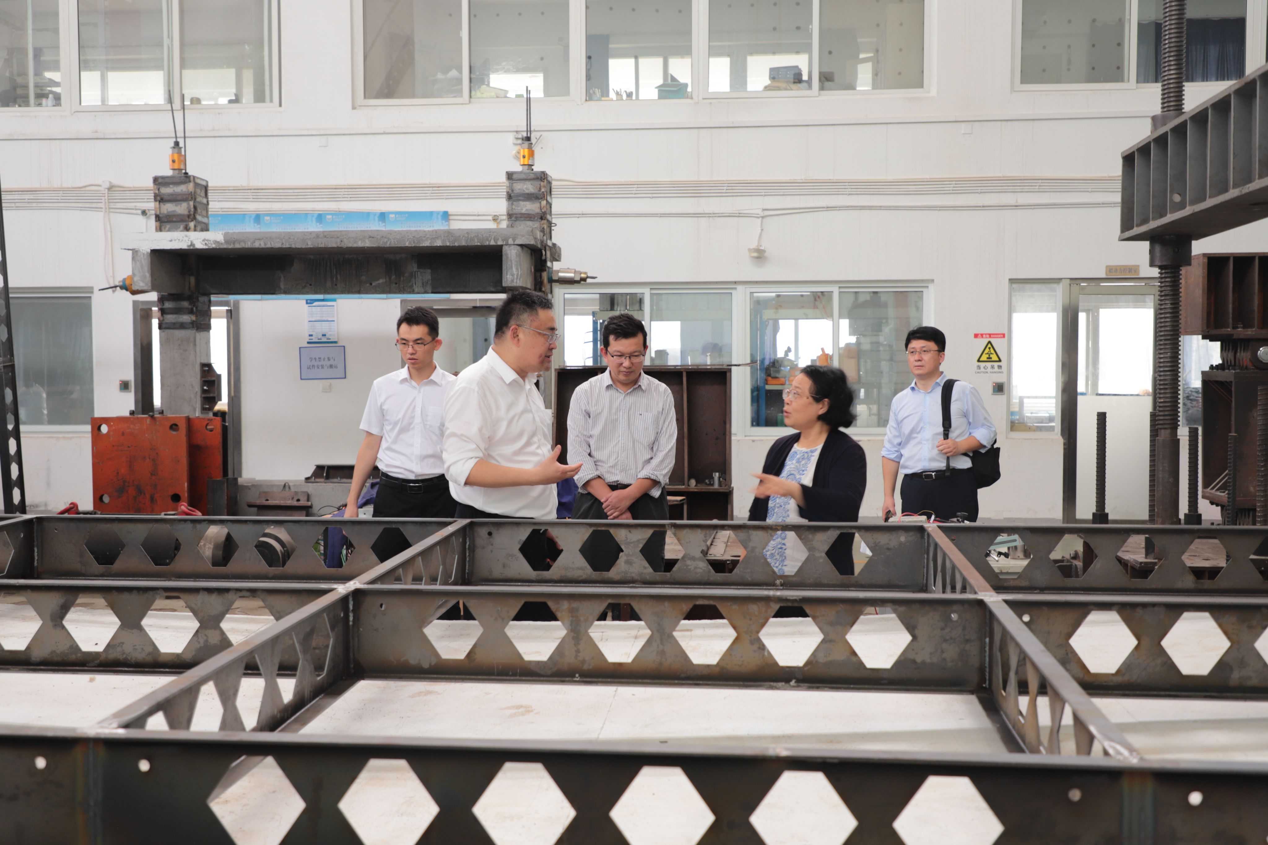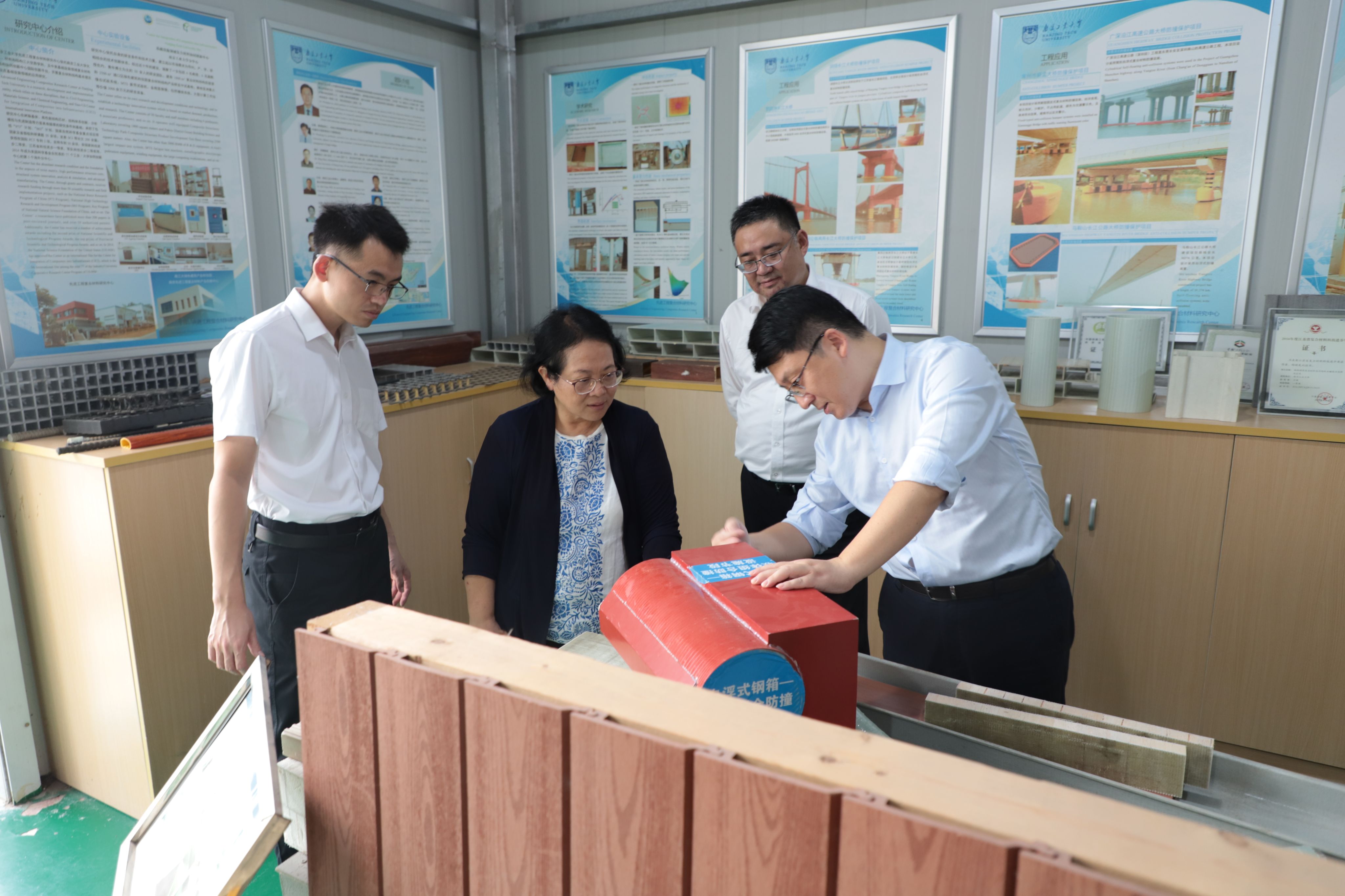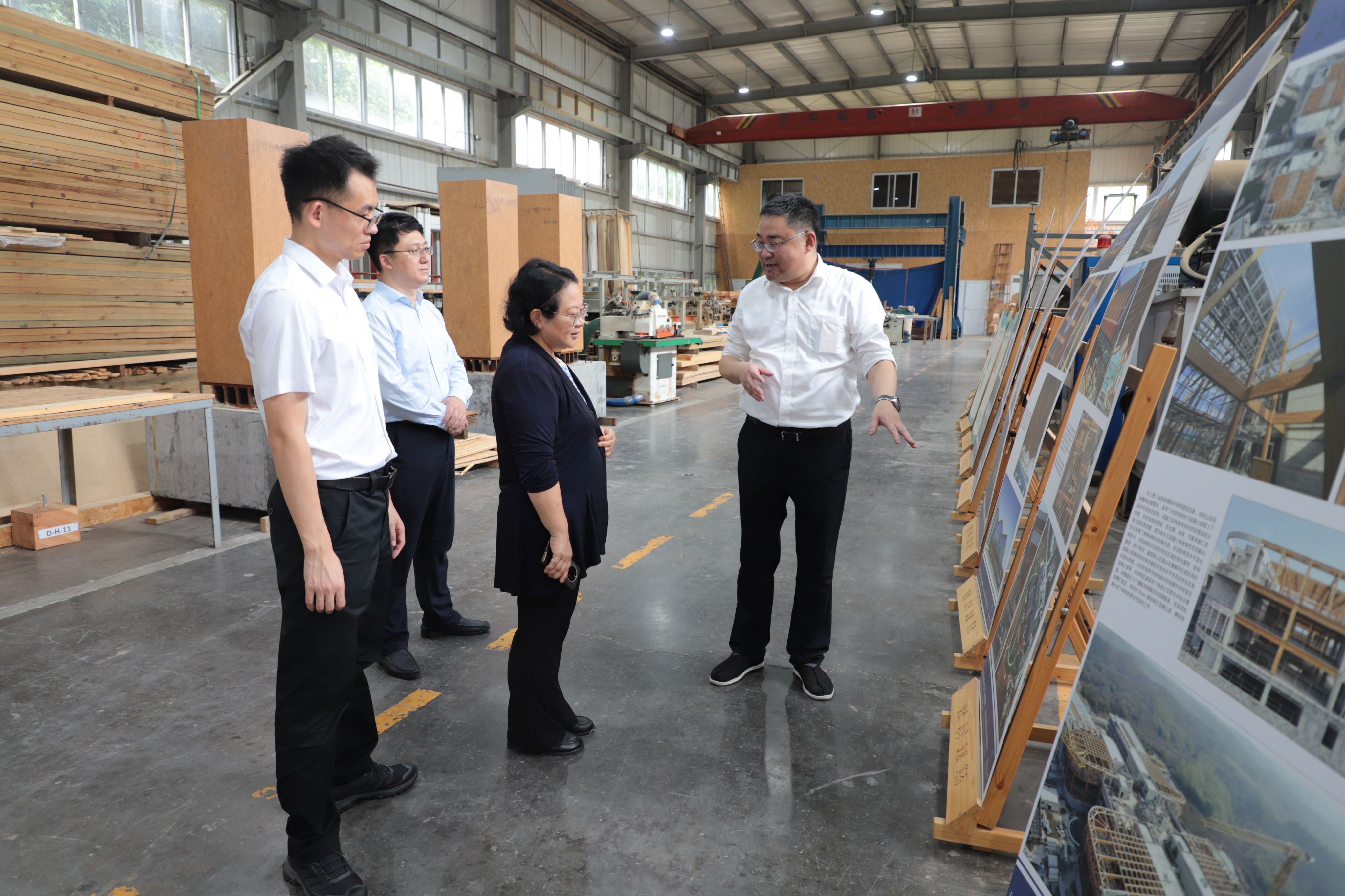 在副校长陆伟东、院长方海的陪同下,陈新司长一行参观了999论坛白菜大全现代木结构实验室、复合材料结构实验室、结构综合实验室等。