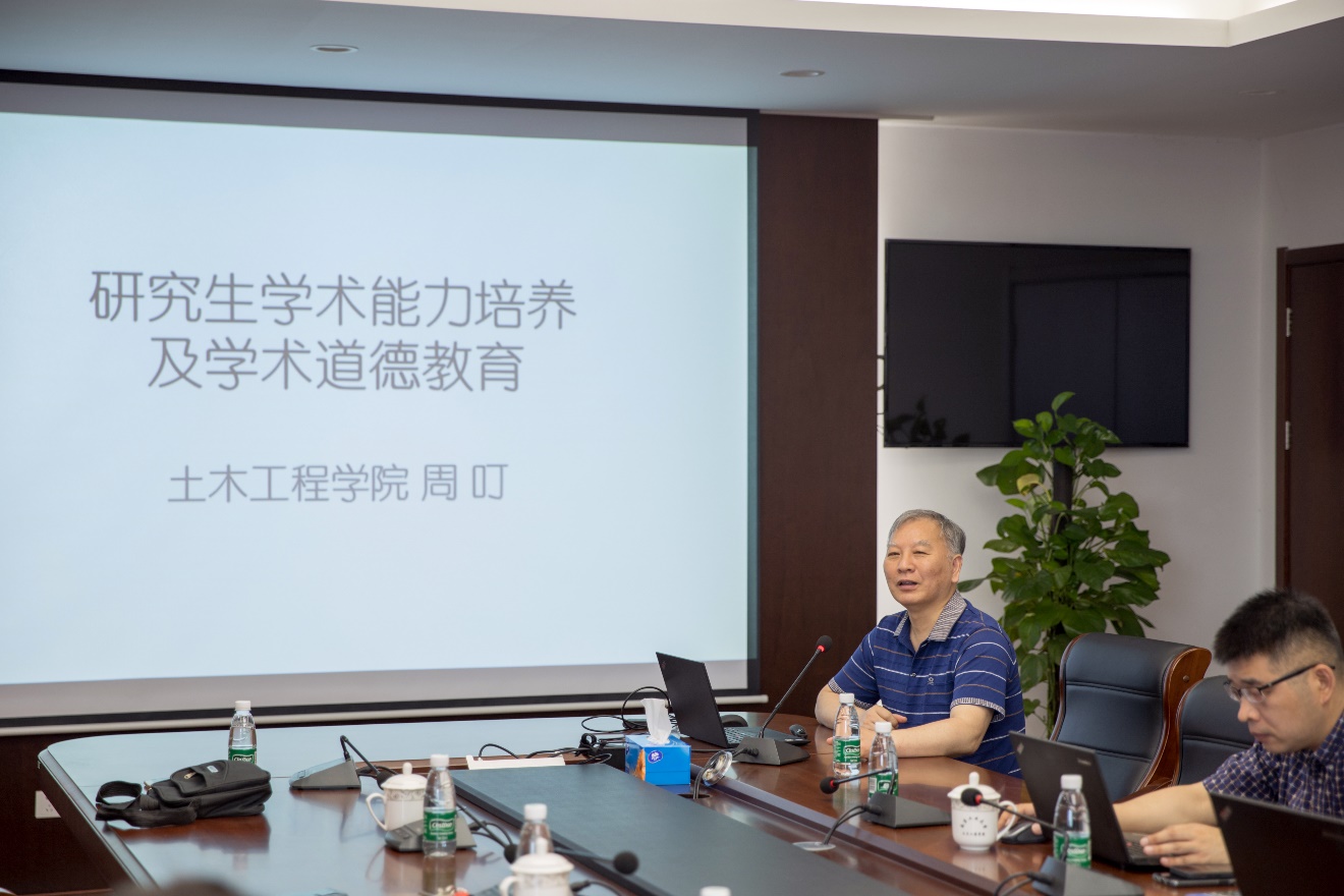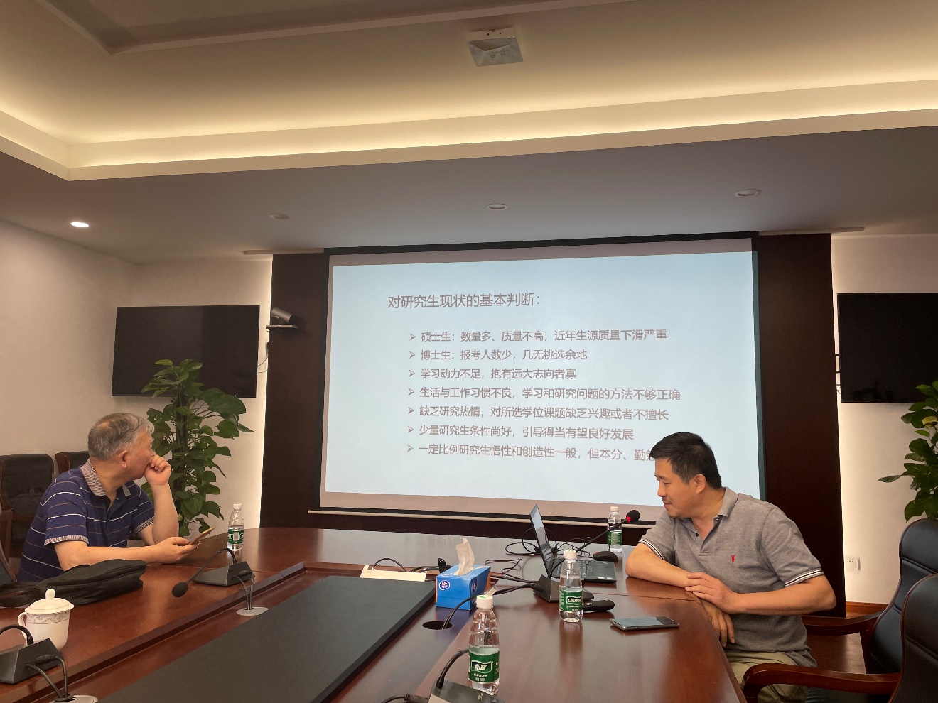 周叮教授做了《研究生学术能力培养及学术道德教育》的报告,从近年来学院研究生生源情况进行分析,阐述了导师指导研究生过程中的关键注意点,给出了提高研究生研究能力的若干措施,提出了对指导研究生研究方法和论文撰写的建议,并详细说明了我院研究生的毕业标准和奖励机制,分析了研究生在学术研究中应注意的学术道德问题。李鸿晶教授做了《研究生教育杂谈》的报告,从白菜官网土木工程学科发展现状、研究生现状以及研究生导师现状三方面进行了深入剖析,分析了导师和研究生的关系,针对导师指导研究生的方法和论文选题,详细介绍了团队经验,提出了宝贵建议,同时逐条说明了研究生导师指导行为准则。董军教授、徐秀丽教授、杜咏教授、岳孔教授、洪万副教授等与会老师与报告人进行了热烈而深入的讨论,各抒己见,就当前我院研究生教育面临的形势总结经验、分析问题、拓展思路,共同聚焦内涵建设、努力推动研究生教育高质量发展。王曙光院长介绍了省优秀研究生论文遴选情况,对本次会议做出了总结,并对研究生培养工作进行了相关部署。