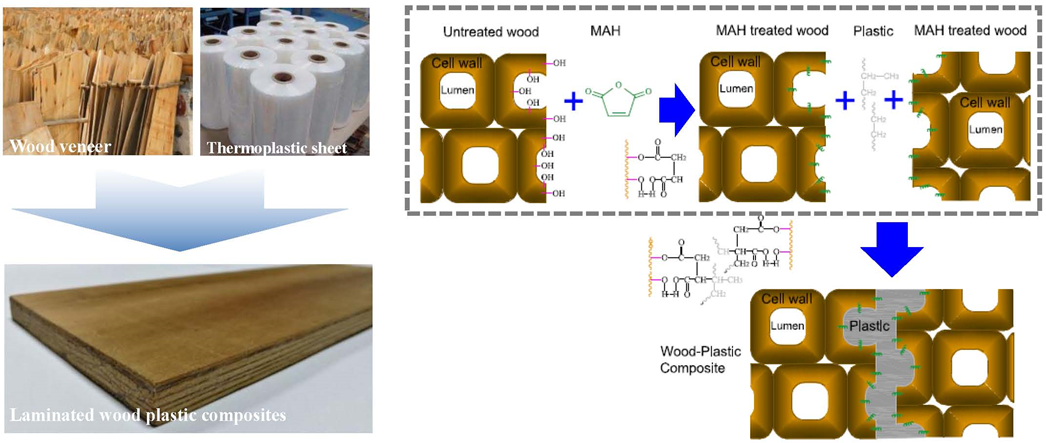 文章以我国建筑结构用木基板材大多采用含“醛”胶黏剂制备导致的室内甲醛危害的环保问题,以及用材为优质天然林木材,而国内优质木材禁伐、国外进口难度日益增加的资源矛盾问题,结合人们对生态宜居生活的要求,以国产低质速生杨木单层板为原材料,聚乙烯和聚丙烯塑料合金片材为胶黏剂,通过层积法成型创新性地研发了低成本“零危害”木基结构板材新产品。文章提出了物理化学措施联用方法,有效地改善了极性木材与非极性塑料合金界面相容性差的难题;所研发产品解决了同类产品应用中刚度不足的短板,刚度提高3.5倍,其力学性能满足产品标准和结构用板材标准规范值。课题组在多功能生物基结构材料制备工艺上实现了原始创新,解决了同类产品无法用作结构构件,以及传统木基结构板材甲醛释放危害的行业共性技术难题,为绿色建筑用材提供了原创性产品和新技术。