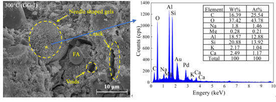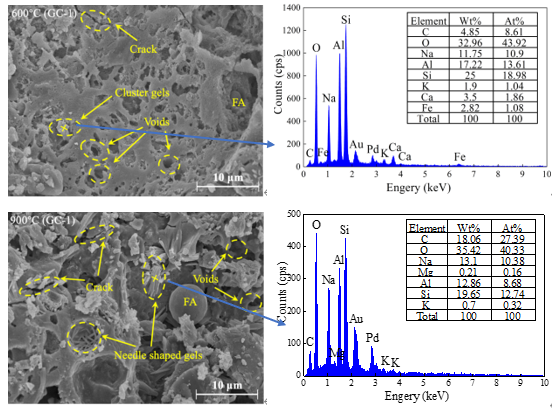 GFRP粉末/粉煤灰地聚物混凝土(GFRP粉末含量30%)在不同高温下的微观图