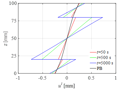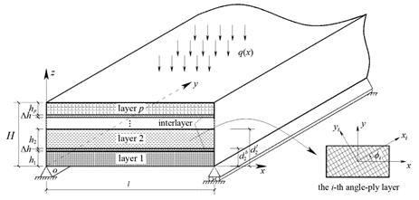 Abstract: Layered angle-ply plates bonded by viscoelastic adhesives exhibit time-dependent behavior when subjected to sustained loads, which is a common phenomenon in practical engineering. The present work proposes analytical solutions based on the exact elasticity theory for the long-term behavior of multilayered angle-ply plates considering viscoelastic interlayers. In the analytical model, each angle-ply layer involves nine independent orthotropic constants and is modeled on the basis of the three-dimensional (3D) elasticity theory. The interlayer exhibits viscoelastic property and is described by the standard linear solid model. The state space method is employed in order to solve the stresses and displacements for the plate, and the convolution equation for viscoelasticity is figured out by Laplace transform. The results of numerical examples show that the present solution is convergent rapidly and is consistent with the finite element solution. The effects of the viscoelastic material constants, the layer angle and the orthotropic constants on the long-term stresses and displacements in the plate are studied thoroughly by use of the present solution.