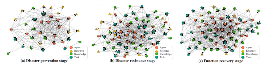 (a)灾害预防阶段;(b)灾害响应阶段;(c)功能恢复阶段