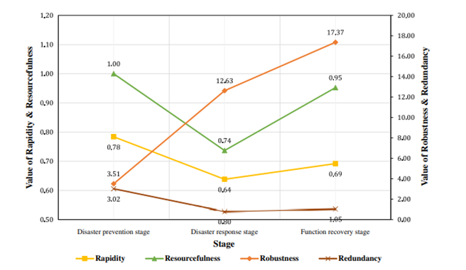Fig. 3. 三个应急响应阶段4R韧性的动态变化