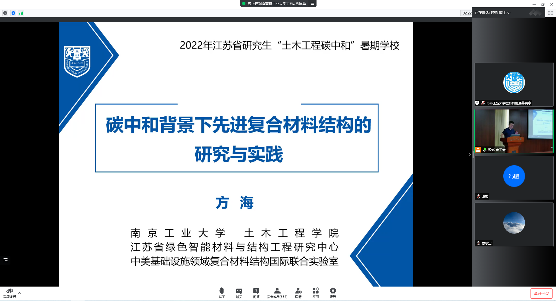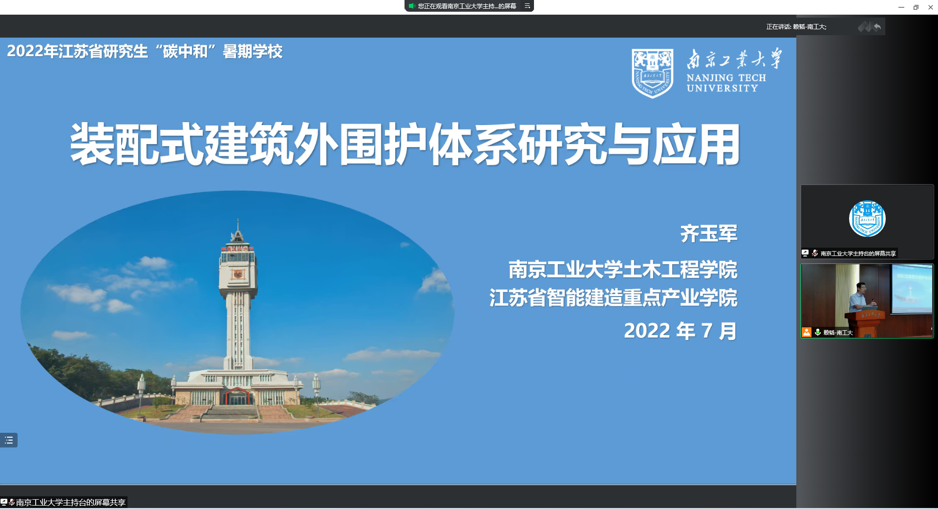 7月14日,2022年江苏省研究生“土木工程碳中和”暑期学校在热烈浓郁的学术氛围中进入第四天,多位国内知名专家学者继续通过主题报告和特色教学的形式为广大学员呈现了精彩的学术报告,并与学员展开学术交流研讨,现场气氛热烈,互动积极。