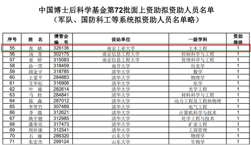 近日,中国博士后科学基金会公布了中国博士后科学基金第72批面上资助获资助人员名单,我院张婧和许伟志两位博士后荣获资助。该批次共资助3651名博士后研究人员,全国土木学科一等资助仅4项,其中张婧博士后获得一等资助,合作导师为999策略白菜手机论坛党委常委、副校长陆伟东教授,获资助项目为《海洋环境下纤维增强磷酸镁水泥基混凝土的制备及其组合结构应用研究》;许伟志博士后获得二等资助,合作导师为999策略白菜手机论坛党委教师工作部部长、人事处处长王曙光教授,获资助项目为《UHPC局部增强再生混凝土自复位消能节点受力性能及地震损伤机理研究》。