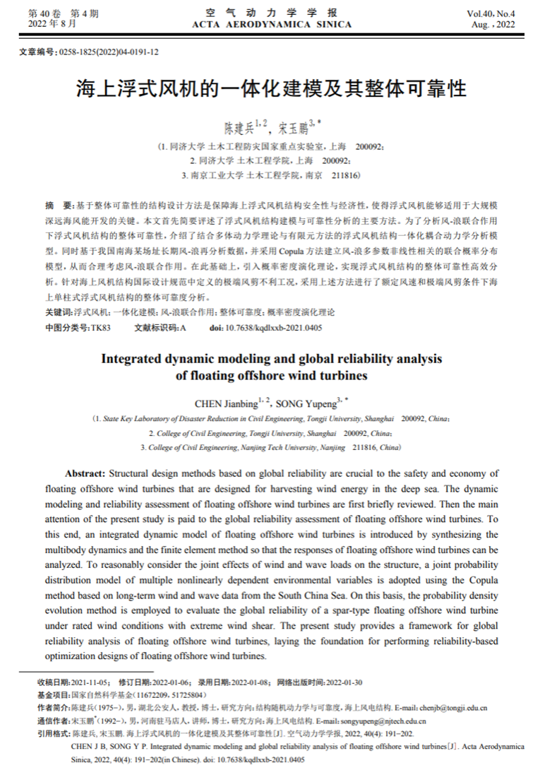 本次会议的一项重要议程是表彰《空气动力学学报》2022年度优秀论文(10篇)。我院教师宋玉鹏的论文《海上浮式风机的一体化建模及其整体可靠性》获此殊荣。