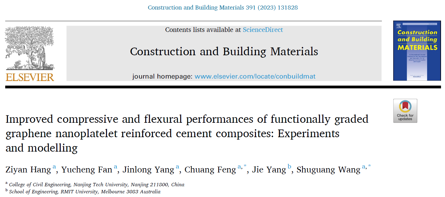 999策略白菜手机论坛999论坛白菜大全王曙光教授团队在国际权威学术顶级期刊《Construction and Building Materials》(中科院一区TOP期刊,IF=7.693)上发表题为“Improved Compressive and Flexural Performances of Functionally Graded Graphene Nanoplatelet Reinforced Cement Composites”的研究论文。2021级博士研究生杭子彦为该论文的第一作者,王曙光教授和冯闯教授合作指导,999策略白菜手机论坛为第一完成和通讯单位。