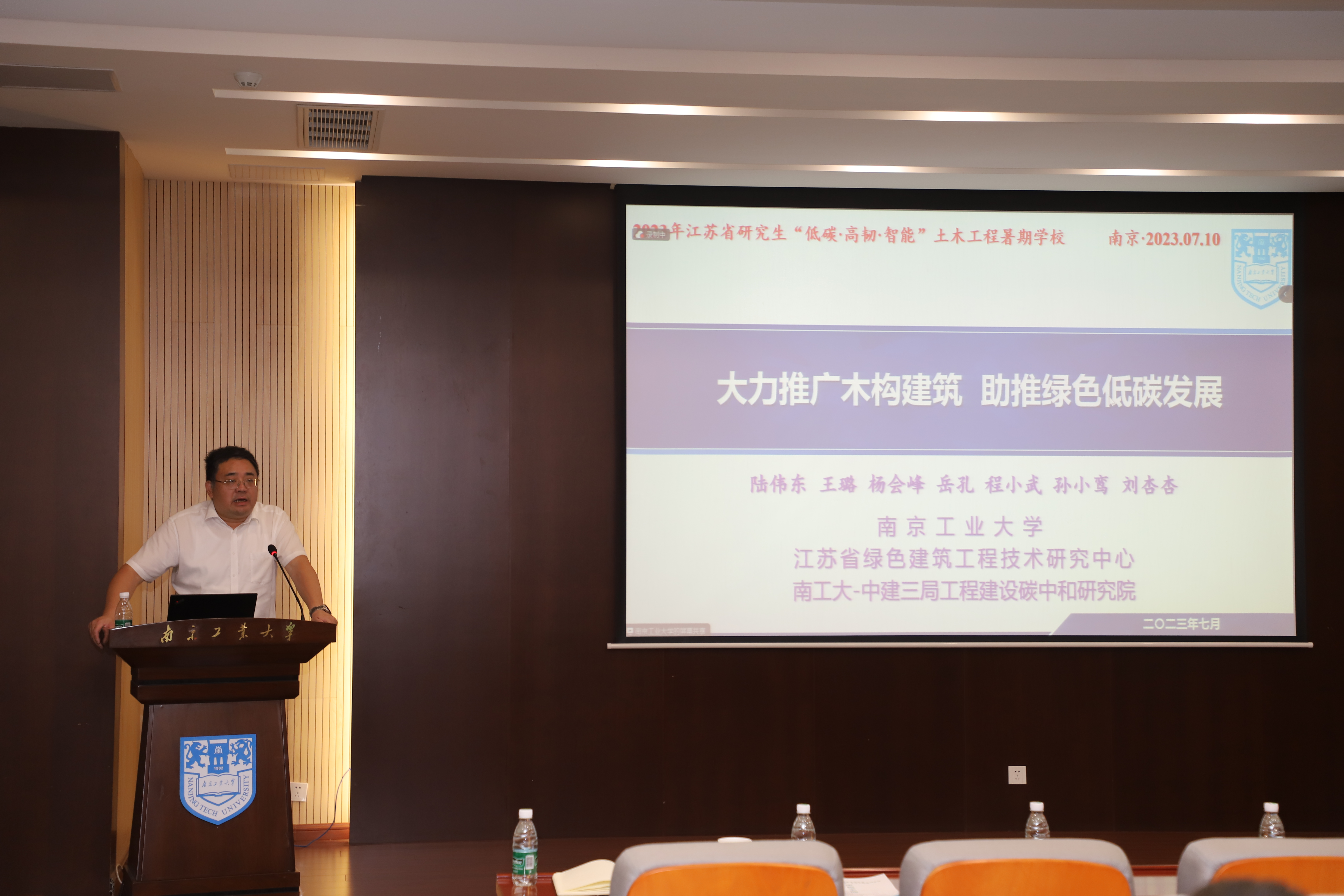 下午,陆伟东教授首先以《大力推广木构建筑、助推绿色低碳发展》为题,详细介绍了发展木结构建筑背景与意义,剖析了我国木结构建筑在传承创新、抗震减灾以及防火阻燃等方面存在的主要问题,创新发展了传统木构体系、协同抗震机理火灾下灾变机理、性能化设计方法、耐久性提升技术体系、木结构无损检测技术等一系列的研究成果。相关成果在相关国家规范中得到了体现,为我国大力发展木结构起到了引领作用和示范效应,为国家绿色发展这一重大战略提供技术支撑。报告以绿色低碳发展为核心,以木结构应用为视角,内容广博丰富,拓宽了学员们的知识视野,激发了学员们的浓厚兴趣。