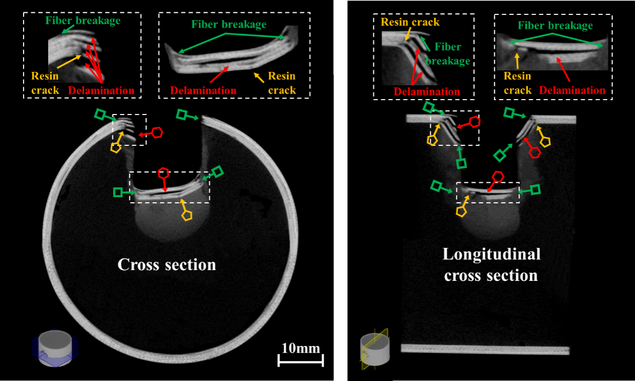 图2 复合材料管冲击后内部损伤的Micro-CT表征