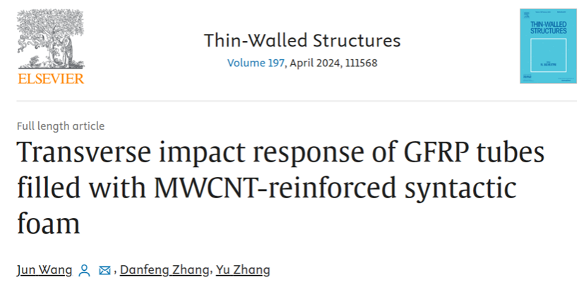 999策略白菜手机论坛999论坛白菜大全王俊教授团队在土木工程领域国际权威期刊《Thin-Walled Structures》(中科院一区TOP期刊,IF=6.4)发表题为“Transverse impact response of GFRP tubes filled with MWCNT-reinforced syntactic foam”的研究论文。该论文第一作者及通讯作者为王俊教授,2021级硕士研究生张丹枫为学生一作,共同作者还有2023届硕士研究生张宇。