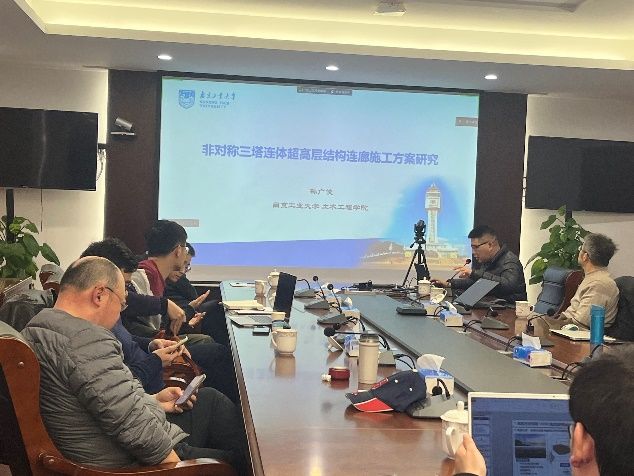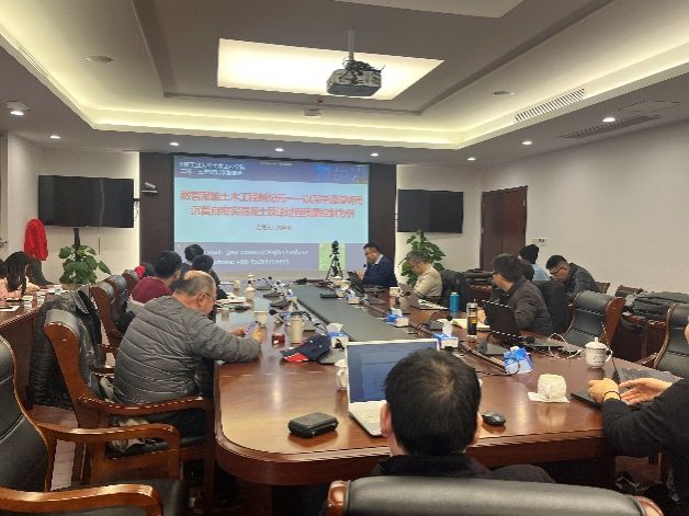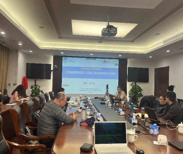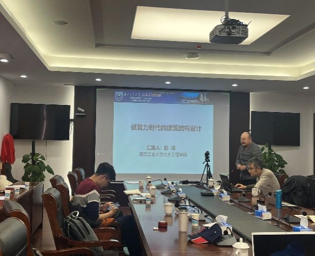 董军教授介绍了双碳战略背景下不锈钢复合钢板结构发展前景研究,张大长教授就220kV新型户内变电站-屋顶构架结构进行了介绍、杨会峰副院长介绍木结构自攻螺杆连接节点的抗震性能研究、孙广俊教授对非对称三塔连体超高层结构连廊施工方案研究进行了汇报、程小武教授对多高层木一混凝土组合结构建造关键技术研究与应用进行了讲解、岳孔老师对装配式建筑围护结构隔声性能提升技术进行了探讨、霍瑞丽老师对FRP增强生物基复合材料结构力学性能进行了汇报、孙小鸾老师对江苏省康复医院木-混凝土混合结构进行了介绍、彭洋老师对介绍了低算力时代的建筑结构设计、徐金俊老师就数智赋能土木工程材料与结构的新纪元得主题进行了案例分析、赖韬老师介绍了基于深度学习的冲击荷载作用位置识别方法。系里其他年轻教师也都就自己所在领域进行了精彩的汇报。